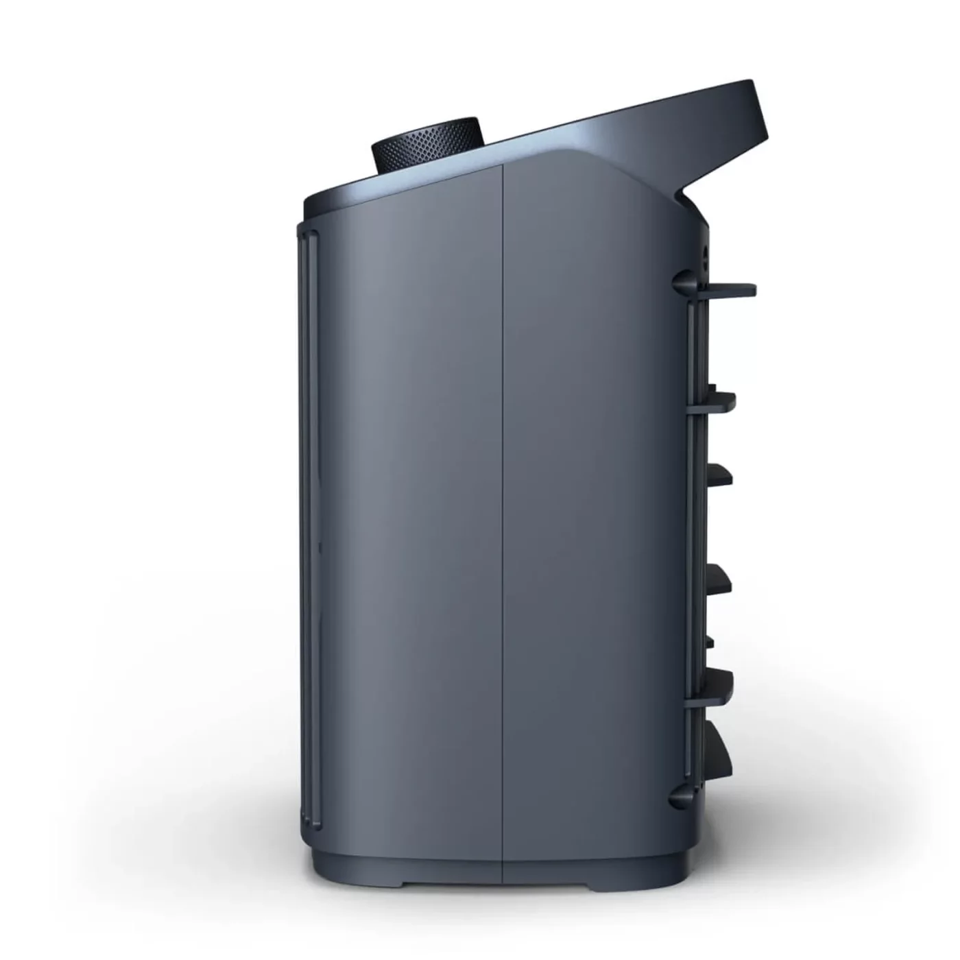 Dimensiunile reduse si manerul integrat permit mutarea usoara dintr-o camera in alta. Designul modern, in nuanta albastra eleganta, se integreaza perfect in orice tip de decor.