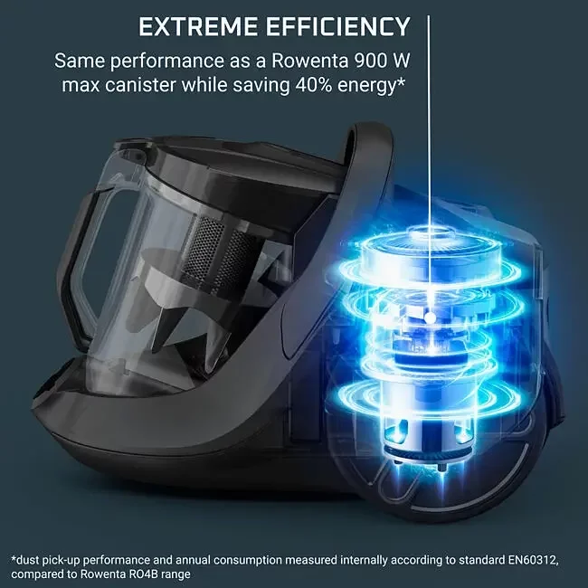 Descopera Rowenta Green Force Cyclonic Effitech® RO7C36EA, aspiratorul fara sac eco-friendly proiectat pentru performanta maxima si impact redus asupra mediului. Cu un motor puternic de 500 W, acest aspirator ofera performanta unui aparat de 900 W, dar cu un consum redus de energie cu pana la 40%, datorita tehnologiei Effitech®.