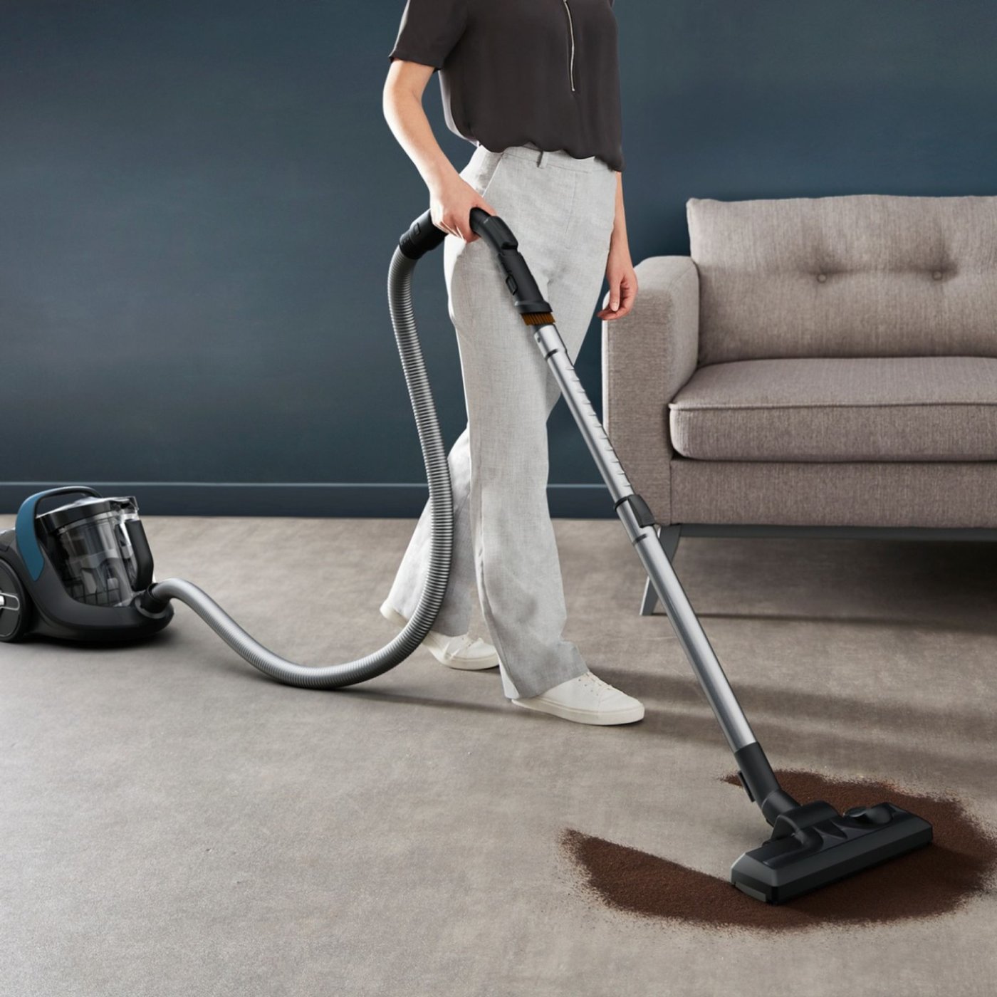 Recipient de praf XXL de 2,5 L: Capacitate mare pentru curatenie indelungata si putere constanta de aspirare.