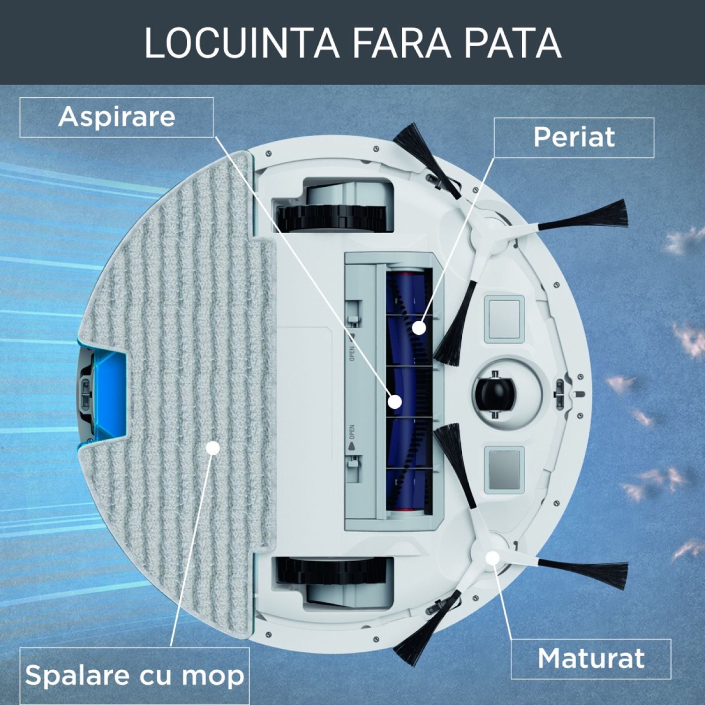 Tehnologia Smart Exploration AI permite aspiratorului sa invete obiceiurile tale, sa optimizeze rutele de curatare si sa ofere recomandari inteligente pentru sesiuni viitoare, inclusiv gestionarea automata a zonelor restrictionate.