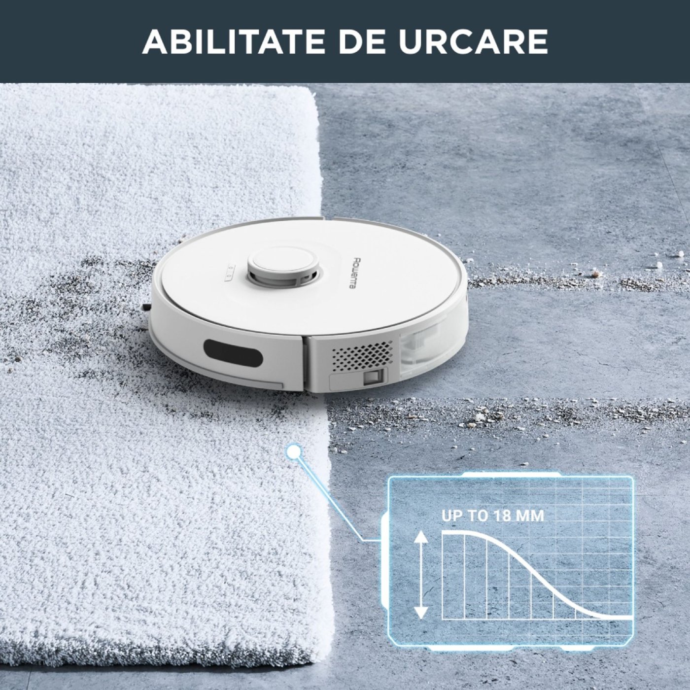 Bateria litiu-ion ofera pana la 120 minute de functionare, acoperind pana la 120 m² intr-o singura sesiune. Aspiratorul poate escalada obstacole de pana la 18 mm, astfel ca nimic nu-i sta in cale.