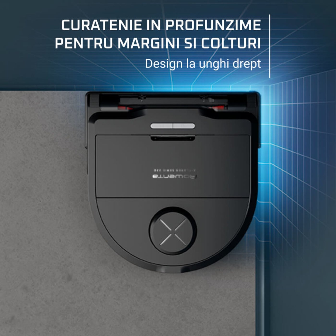 Rowenta X-Plorer Serie 220 poate acoperi pana la 120 m² intr-o singura sesiune. Cand bateria se descarca, robotul revine automat la statia de incarcare si isi reia curatenia exact din punctul unde a ramas.