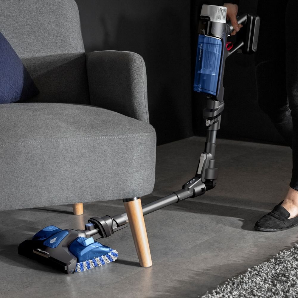 Aspirator Vertical Rowenta X-Force Flex 9.60 Aqua RH20C7WO, 250W, 100AW, 45 min, Flex, Aspira si Spala, Gri-Albastru