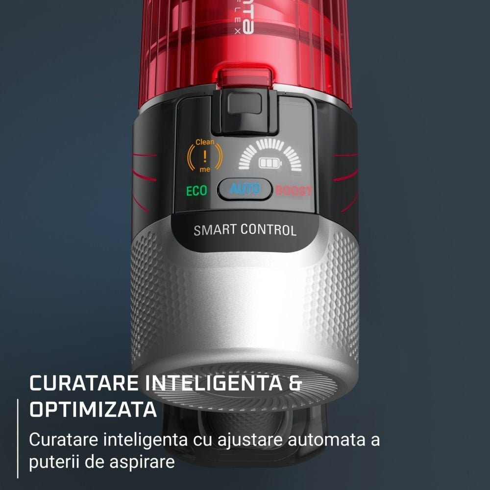 Obtine echilibrul perfect intre performanta si confort cu noul aspirator vertical fara fir Rowenta X-Force Flex 9.60 Complete RH2099WO. Acest model ultra-usor, fabricat in Franta, cantareste doar 1.1 kg in modul de mana, fiind ideal pentru sesiuni de curatenie fara efort. Desi compact, dezvolta o putere de aspirare de pana la 100 Air Watts in modul Boost si ofera o autonomie de pana la 45 de minute, asigurand o curatare eficienta de la podea pana la tavan. Tehnologia inteligenta integrata ajusteaza automat puterea de aspirare in functie de tipul de podea, optimizand consumul bateriei pentru rezultate impecabile.
