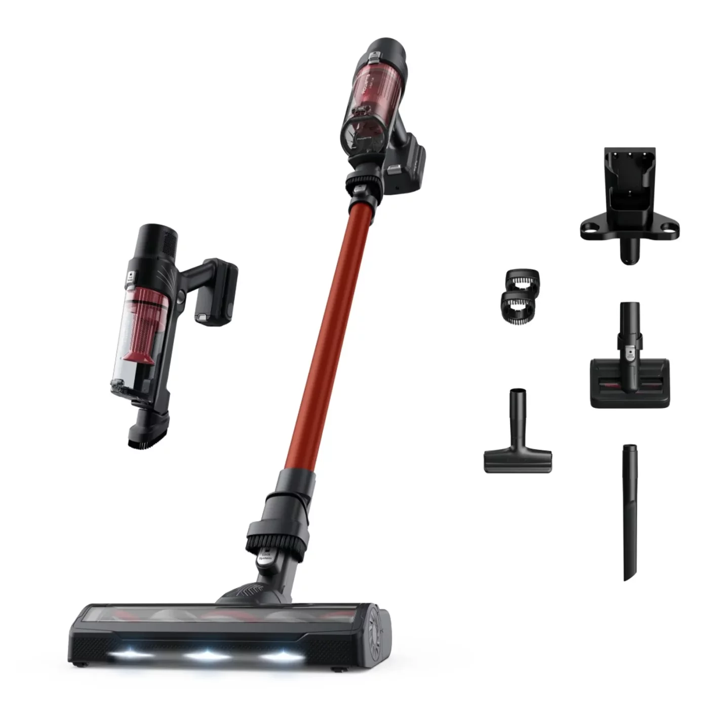 Bateria performanta ofera o autonomie de pana la 45 de minute, suficienta pentru sesiuni complete de curatenie intr-o singura incarcare. Un avantaj major al acestui model este peria motorizata cu iluminare LED integrata, care scoate la iveala praful ascuns sub mobilier sau in colturile intunecate. Sistemul de filtrare avansat retine pana la 99% din particulele fine si alergeni, garantand un mediu mai sanatos. In plus, modelul RH6A73WO vine echipat cu o statie de incarcare practica ce include suport pentru accesorii, mentinand totul organizat si gata de utilizare. Cu accesorii dedicate pentru tapiterie si spatii inguste, acest aspirator in culori vibrante de rosu si negru este solutia completa pentru o casa impecabila.
