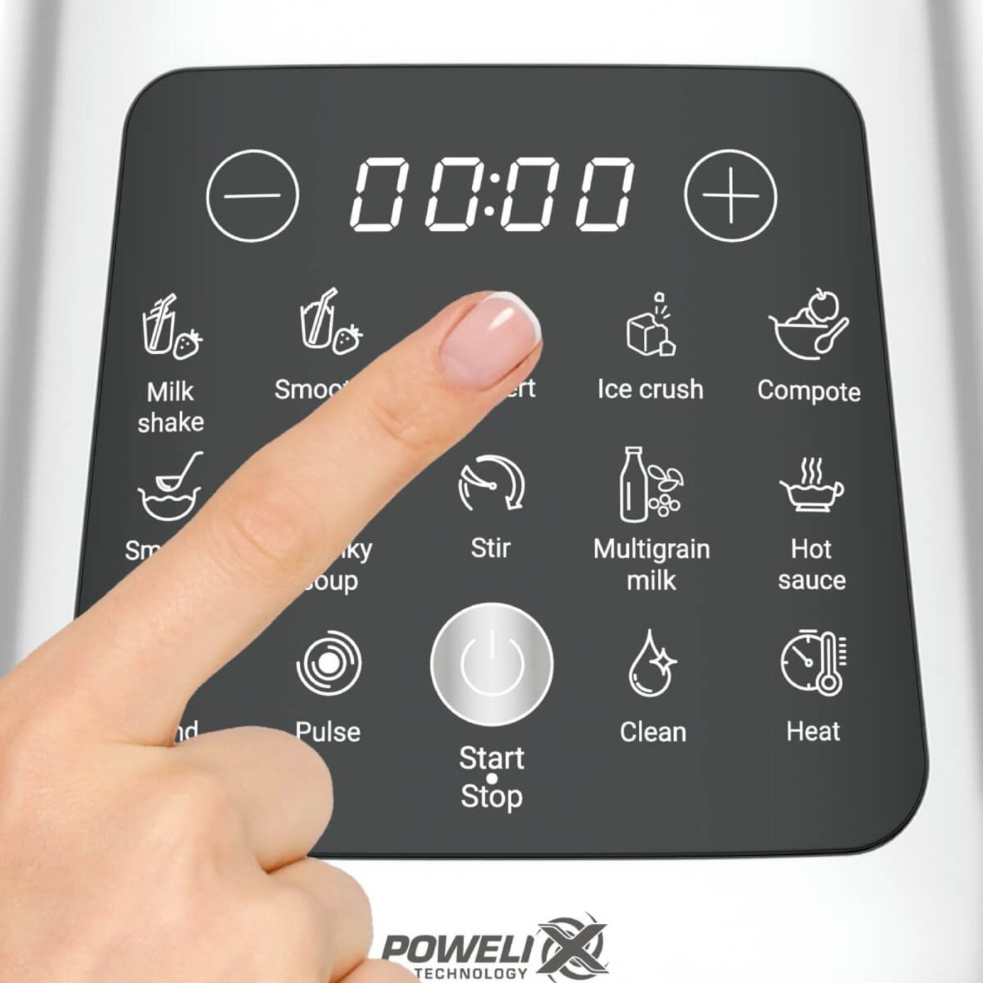 Cu un motor puternic de 1400 W si lame Powelix performante, blenderul garanteaza mixare rapida si uniforma, cu rezultate cu pana la 30% mai rapide decat modelele standard. Cele 10 programe automate acopera retete calde si reci – smoothie, milkshake, desert, zdrobirea ghetii, supa crema, compot, sosuri si chiar lapte vegetal – toate la doar doua atingeri pe ecranul tactil intuitiv.