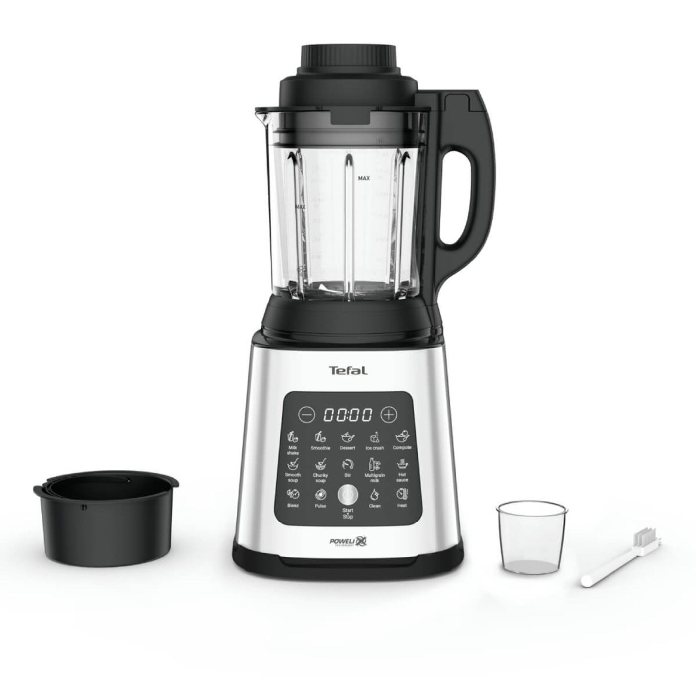 Designul premium, cu sticla de calitate si finisaje metalice elegante, combina performanta cu estetica, in timp ce sistemul de racire cu aer asigura durabilitate optima a motorului pentru ani de utilizare. Tefal PerfectMix Cook este blenderul ideal pentru pasionatii de gatit sanatos, care vor rezultate rapide, sigure si delicioase, zi de zi.