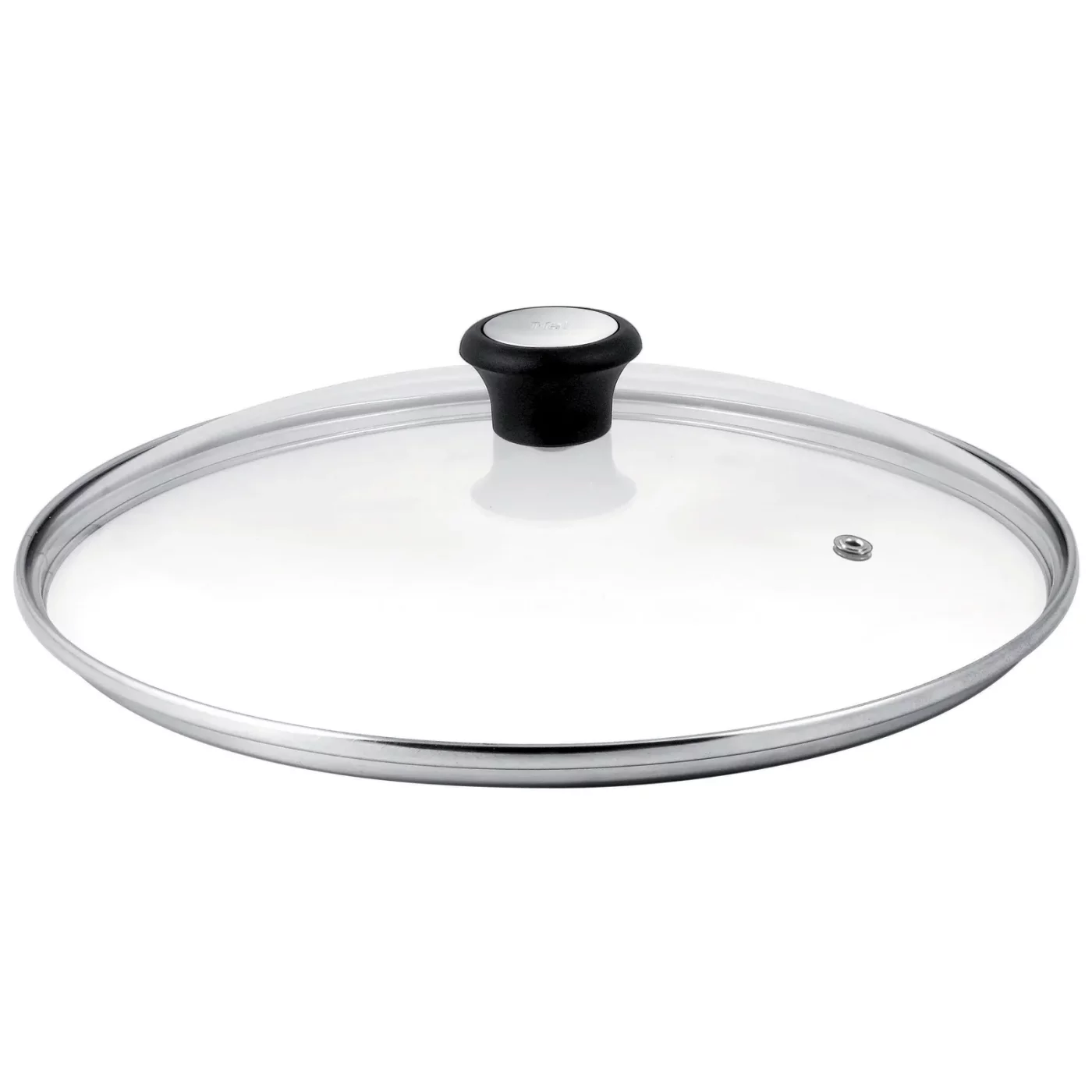 Completeaza-ti setul de vase cu acest capac de sticla Tefal Exception de 28 cm. Beneficiaza de un maner ergonomic pentru o manevrare usoara, margine solida din inox si orificiu pentru eliberarea treptata si controlata a aburului. Este compatibil cu tigaile, oalele si cratitele Tefal.