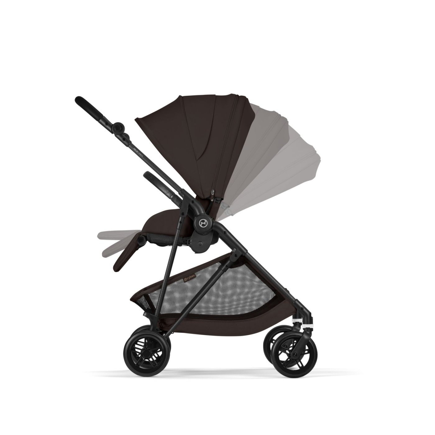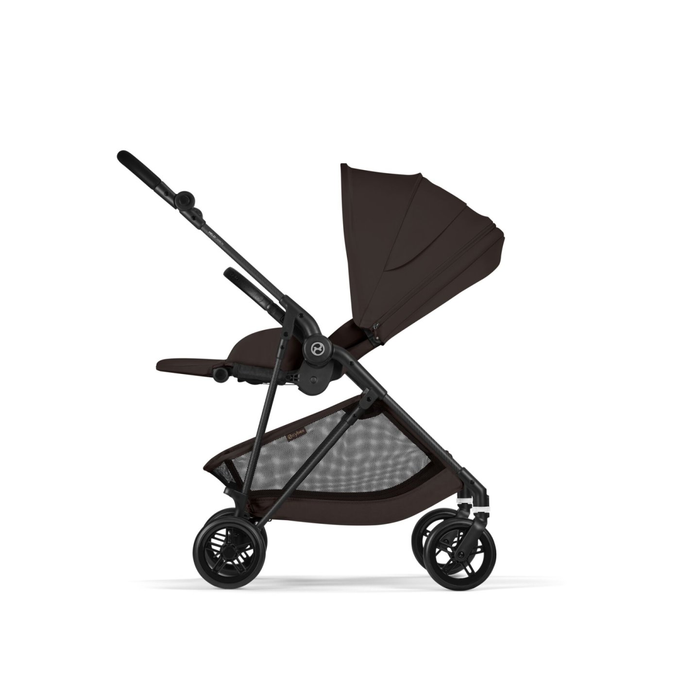 Carucior 3 in 1 Cybex Melio Carbon pentru copii, ultra usor, cu landou, Chocolate Brown