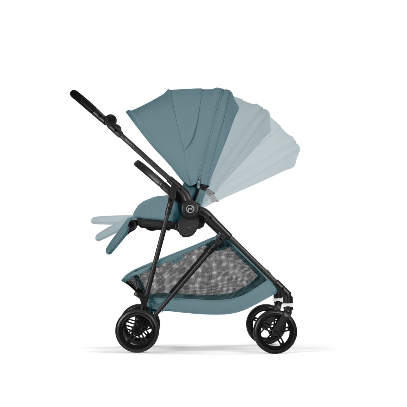 Carucior 3 in 1 Cybex Melio Carbon pentru copii, ultra usor, cu landou, Stormy Blue