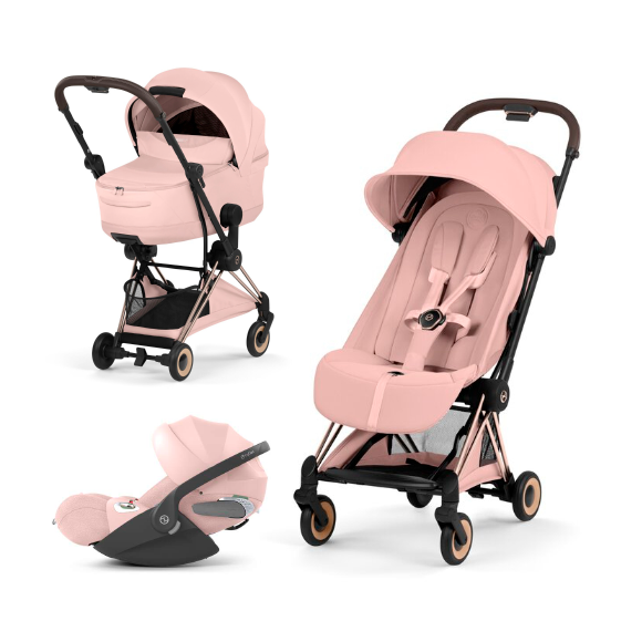 Carucior 3 in 1 pentru copii Cybex Coya Style, premium, Peach Pink cu cadru Rosegold