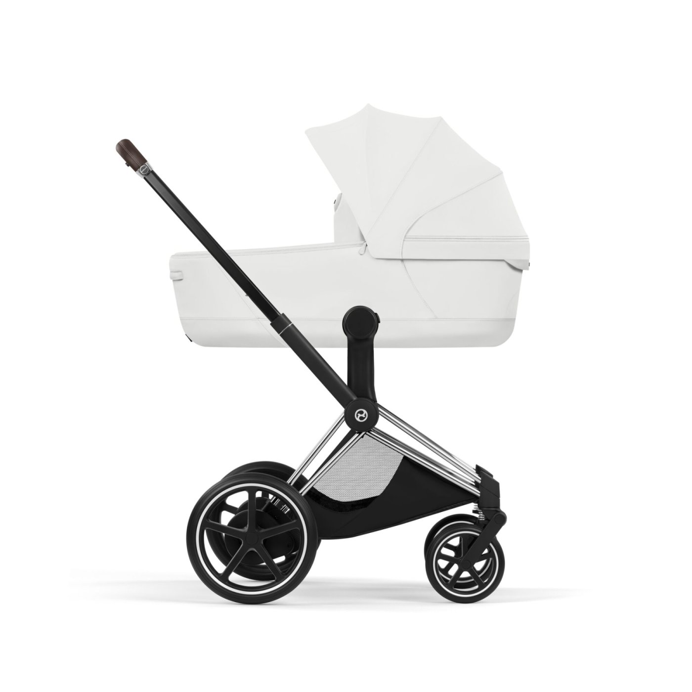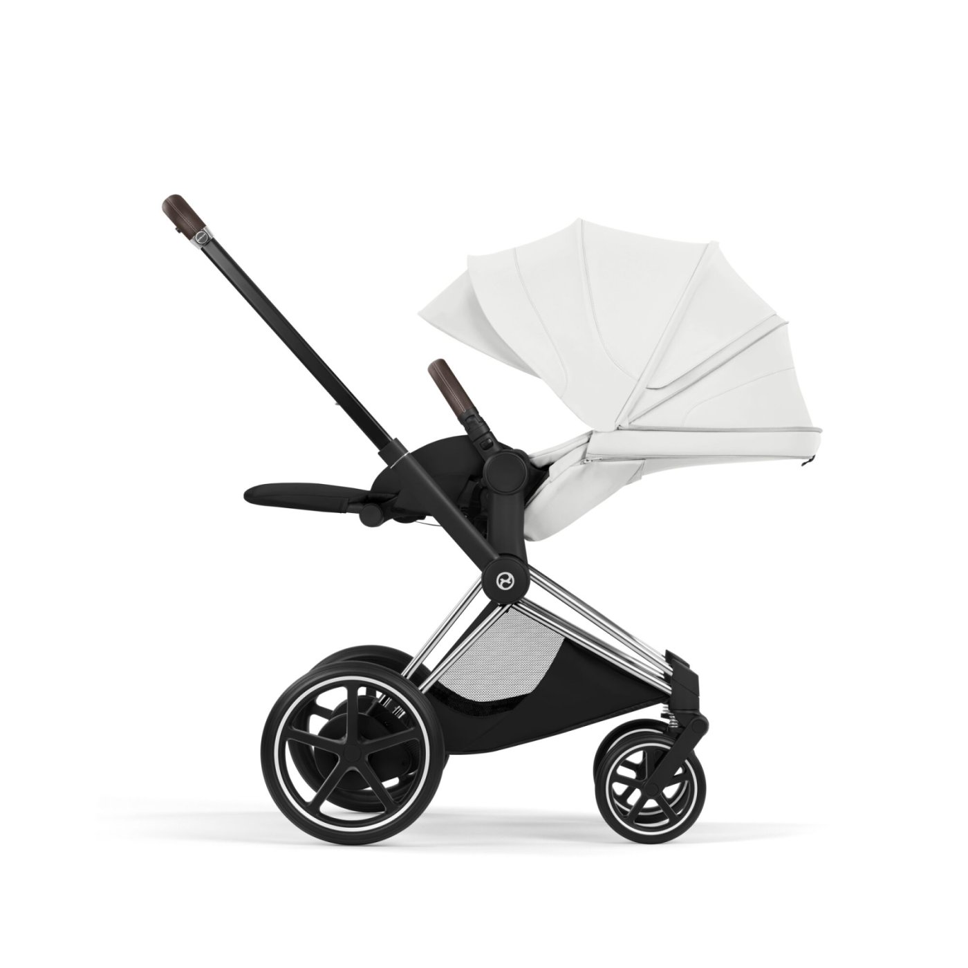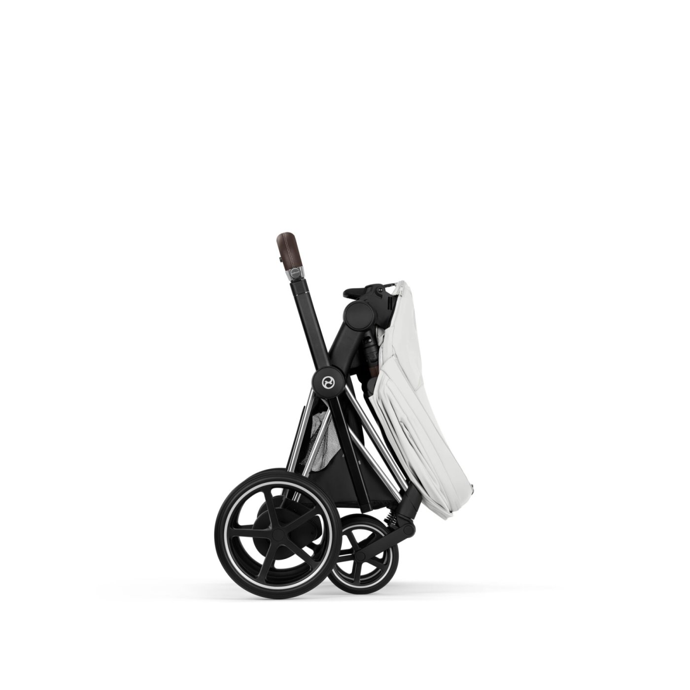 Carucior 3 in 1 pentru copii Cybex E-Priam Style, cu landou si scoica Cloud T Plus, Off White cu cadru Chrome