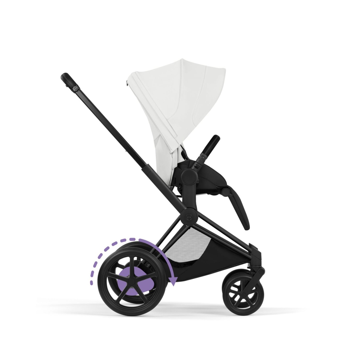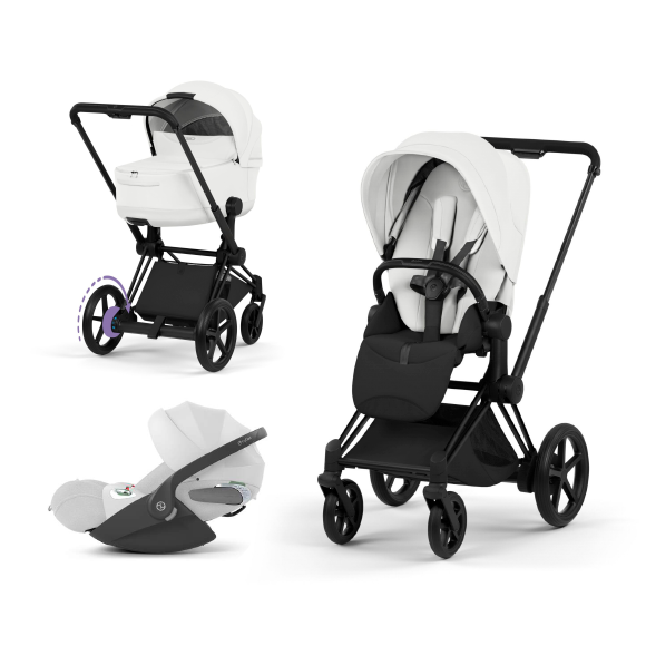 Carucior 3 in 1 pentru copii Cybex E-Priam Style, cu landou si scoica Cloud T Plus, Off White cu cadru Matt Black
