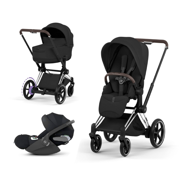 Carucior 3 in 1 pentru copii Cybex E-Priam Style, cu landou si scoica Cloud T Plus, Sepia Black cu cadru Chrome