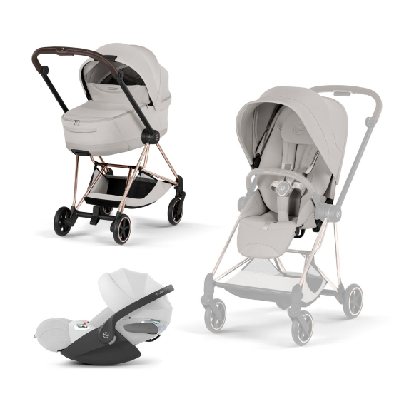 Carucior 3 in 1 pentru copii Cybex Mios Style, premium, City Grey cu cadru Rosegold