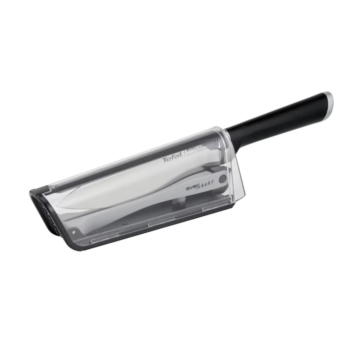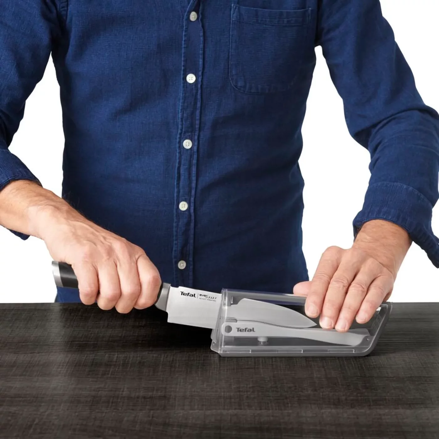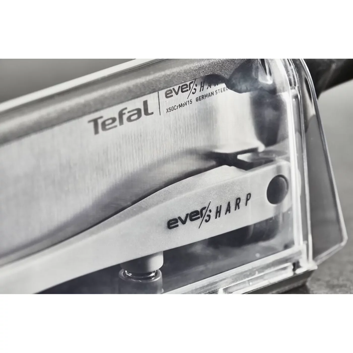 Cutitul bucatarului cu suport de ascutire Tefal Ever Sharp K2569004, 16.5 cm, Tehnologie Dual Pivot, Otel german, Negru