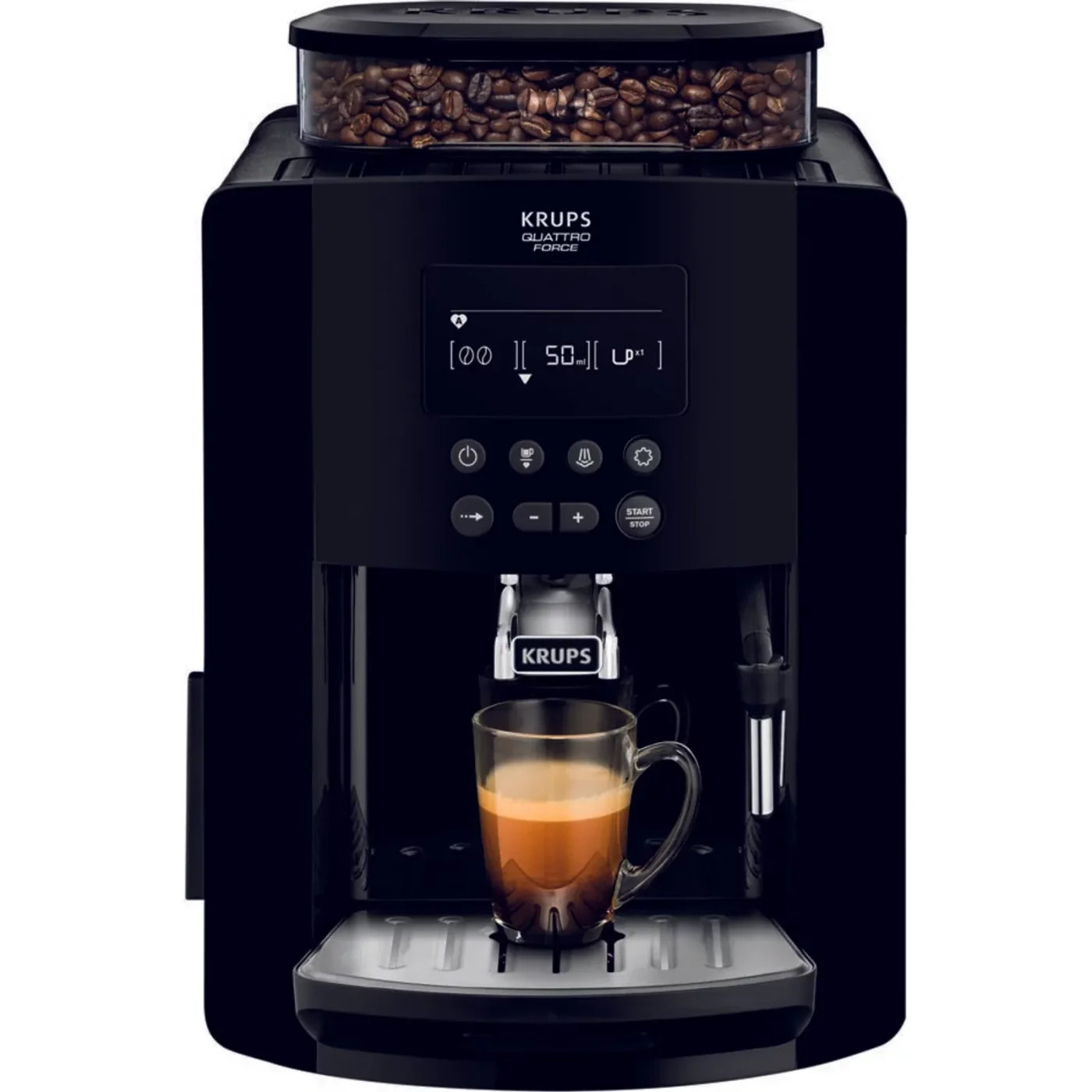 Espressor automat Krups Arabica EA817010, 15 bari, ecran LCD intuitiv, rezervor boabe 260 g, 1.7 L, rasnita 3 niveleEcran LCD intuitiv de mari dimensiuni;Sistem Krups Quattro Force pentru o rasnire cu 20% mai rapida, presare perfecta, sistem de extractie avansat al cafelei si golire automata a sistemului dupa fiecare utilizare;Functie de memorare reteta preferata;3 trepte de temperatura si 3 nivel ...