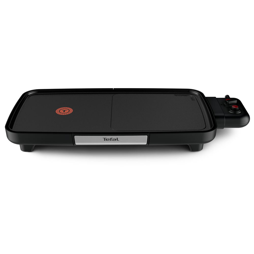 Gratarul electric Tefal Plancha Booster CB641810 este creat pentru preparate delicioase si gatit sanatos acasa, oferind o suprafata de gatire XL de 50 x 26 cm (1300 cm²) perfecta pentru pana la 6–8 persoane. Cu putere de 2200 W si termostat reglabil pe 5 niveluri poti controla precis temperatura pentru carne, peste, legume sau alte retete favorite. Suprafata antiaderenta Resist+ impreuna cu indicatorul Thermo-Spot® iti arata cand plancha a atins temperatura ideala pentru gatit, iar constructia robusta asigura distributia uniforma a caldurii pentru rezultate consistente. Gratarul Plancha Booster combina performanta cu usurinta in utilizare si curatare.