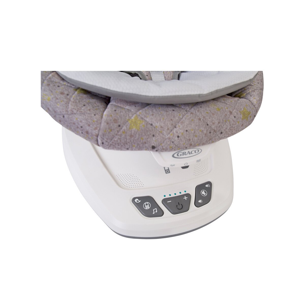 Balansoarul ofera o miscare tridimensionala ce reproduce senzatia linistitoare a leganatului natural. Aveti la dispozitie 5 trepte de viteza, fiecare indicata prin lumini LED elegante, pentru a gasi ritmul ideal al bebelusului. In plus, scaunul este prevazut cu un sistem de vibratii cu 2 niveluri, menit sa aduca un plus de calm si confort. Cu o simpla apasare de buton, balansoarul porneste, iar leganarea se activeaza usor, printr-o singura impingere delicata.
