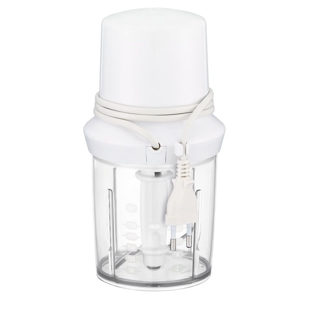 Utilizare intuitiva si design ergonomic Sistemul de utilizare este extrem de simplu: este nevoie de o singura apasare pe capac pentru a activa lamele. Capacitatea sa de 250ml (sau 200g) este perfect dimensionata pentru portii mici si medii, eliminand risipa si facilitand depozitarea in orice dulap de bucatarie.