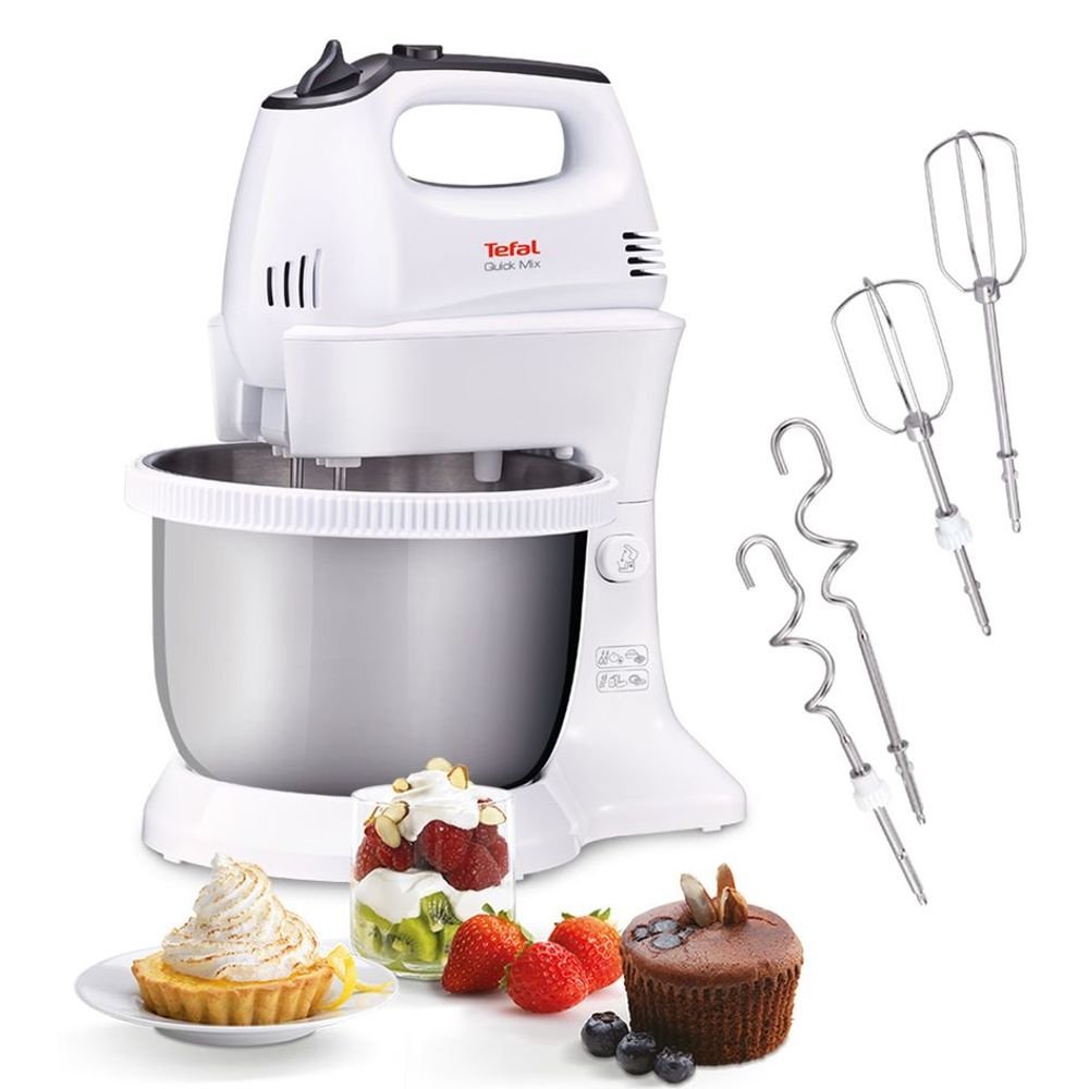 Mixer cu bol Tefal Quick Mix HT312138, 300W, 5 Viteze + Turbo, Bol rotativ 3.5L, Alb