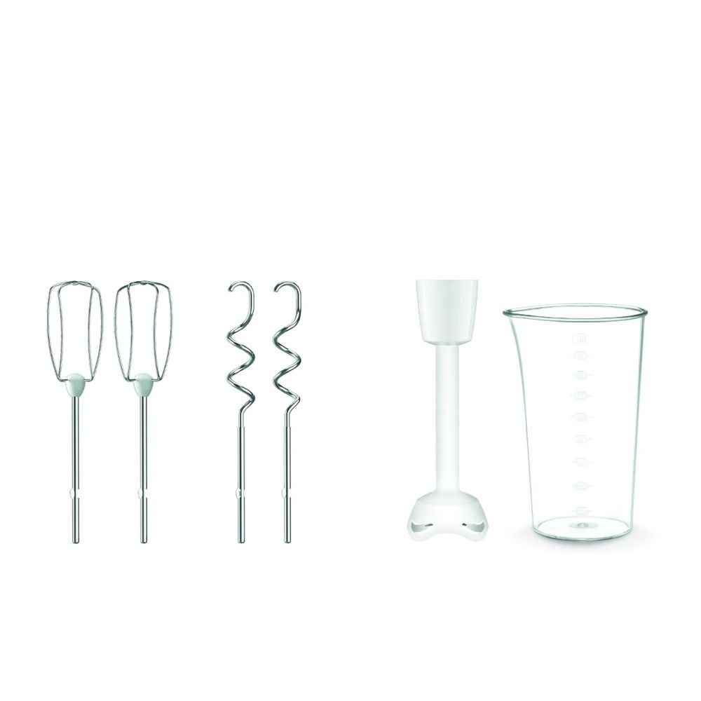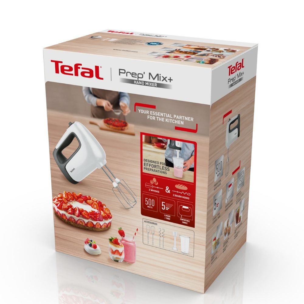 Mixer de mana Tefal Prep'Mix+ HT462138, 500W, 5 Viteze + Turbo, Picior Pasator, Pahar Gradat, Alb