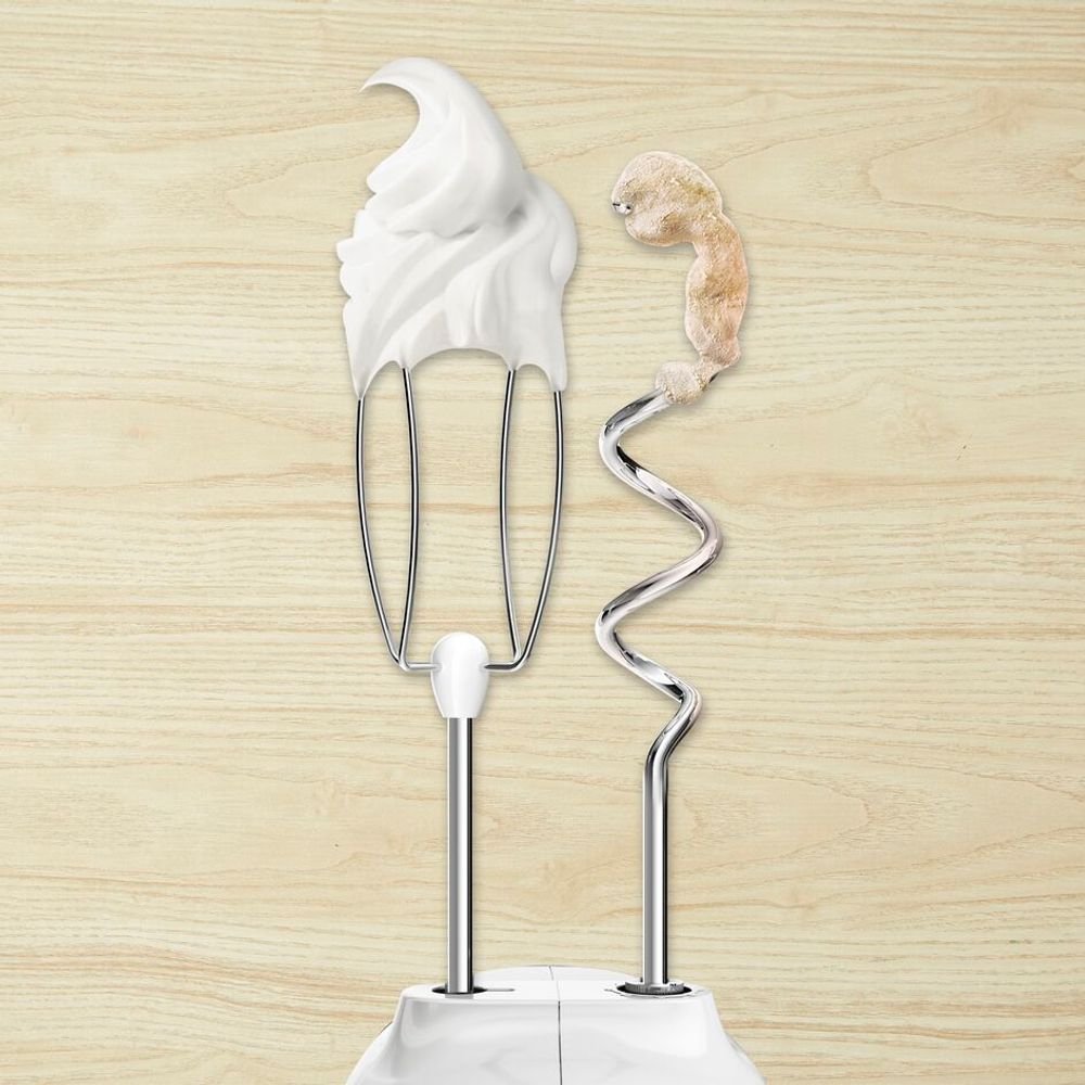 Mixer de mana Tefal Quick Mix HT310138, 300W, 5 Viteze + Turbo, 2 Teluri, 2 Carlige, Alb