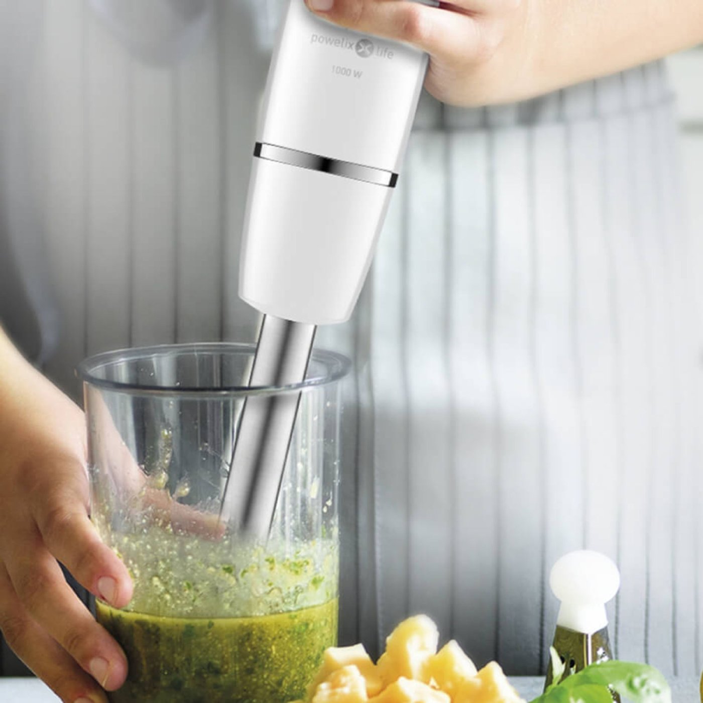 Motorul de 1000 W garanteaza putere maxima pentru orice reteta, de la supe crema si smoothie-uri pana la sosuri si bezele delicate. Mixerul include un accesoriu pentru zdrobirea ghetii, ideal pentru bauturi racoritoare si smoothie-uri cu textura perfecta, precum si telul, perfect pentru omlete, albusuri batute si preparate delicate.