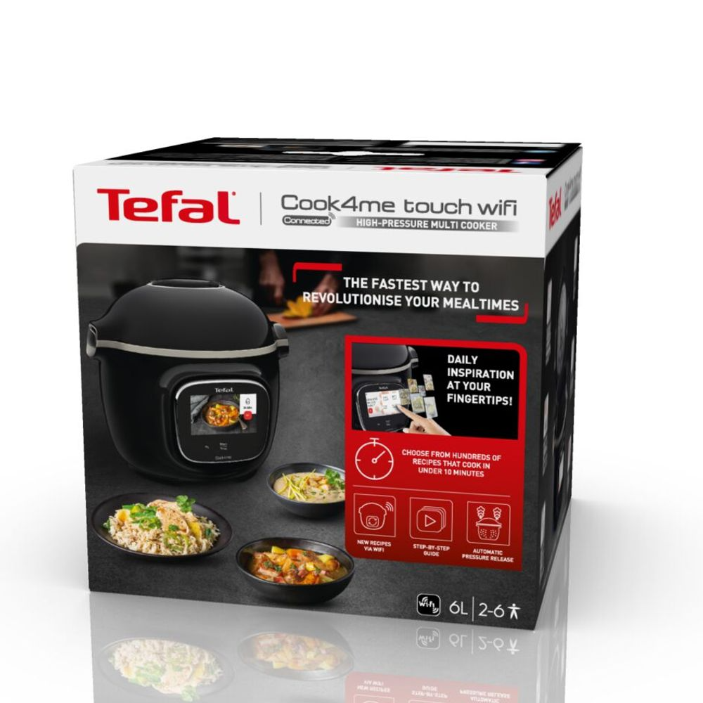 Multicookerul Tefal Cook4Me Touch CY912831 iti permite sa gatesti rapid, usor si inspirat toate retetele tale favorite, cu peste 250 de retete predefinite si acces nelimitat prin WiFi. Aparatul te ghideaza pas cu pas, cu imagini si video, si adapteaza timpul de gatire in functie de ingrediente, cantitate si numarul de portii (2/4/6). Cu 13 moduri de gatire – inclusiv gatire sub presiune, gatire la abur, fierbere, gatire lenta si reincalzire poti pregati orice, de la aperitive si tocanite, pana la deserturi delicioase, economisind timp si energie.