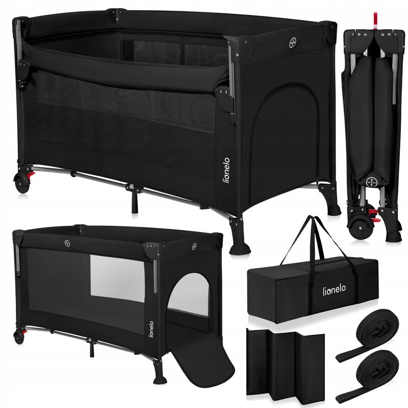 Patut pliant pentru copii Lionelo Ellen 3 in 1, multifunctional, cu laterala culisanta, Black Carbon