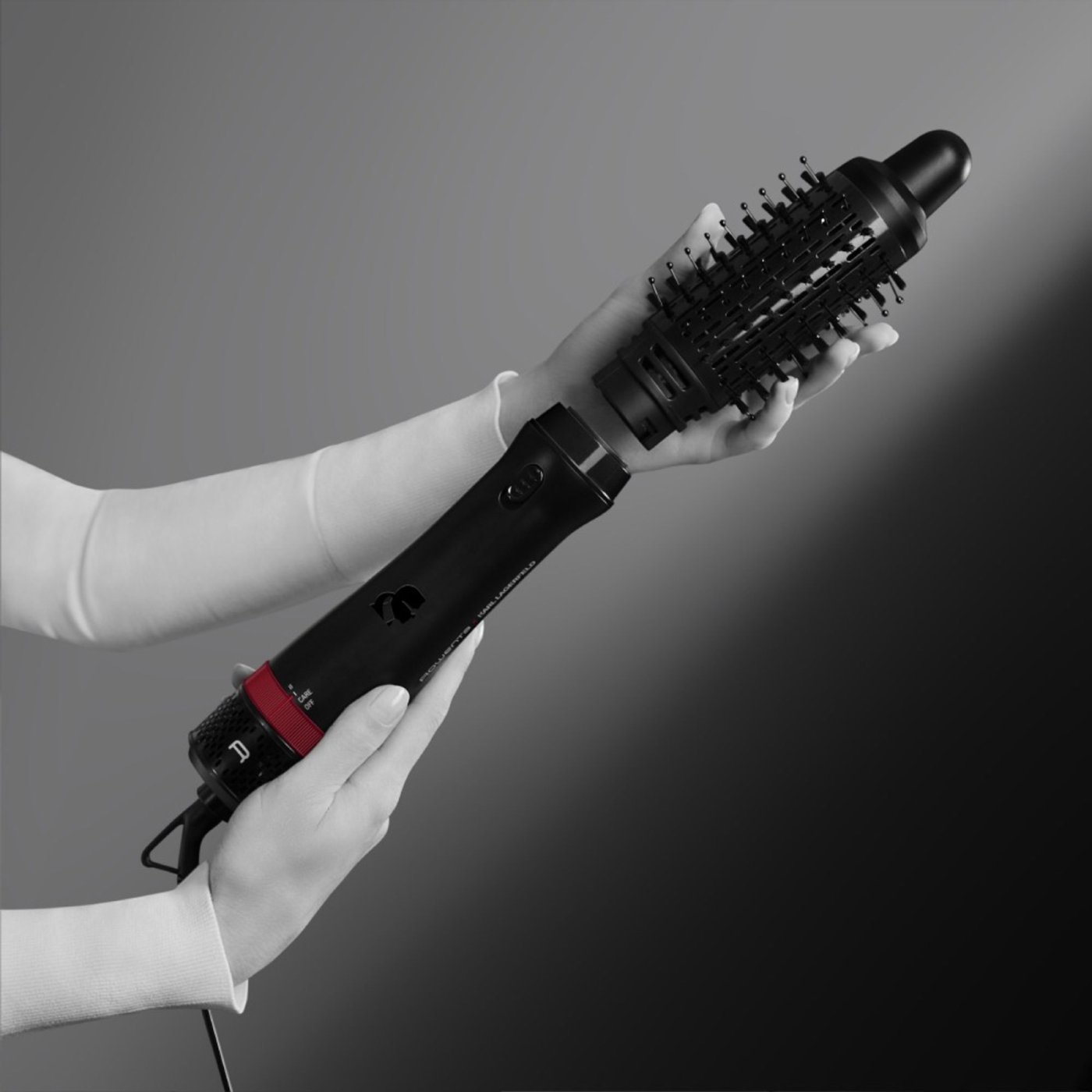 Rowenta x Karl Lagerfeld Express Style CF635LF0 este peria cu aer cald creata pentru coafuri rapide, versatile si protectie zilnica a parului. Echipata cu 5 accesorii multifunctionale, aceasta perie usuca si stilizeaza simultan, oferind volum, netezire si stralucire intr-un singur pas.