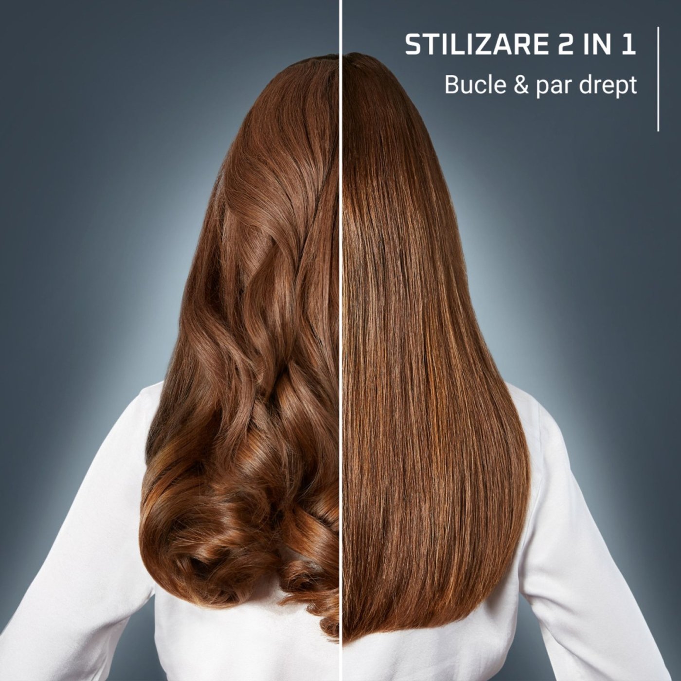 Rowenta Thermostyle SF7120E0 combina tehnologia cu ioni, invelisul din titan si functionalitatea 2 in 1 pentru a oferi par neted, stralucitor si bucle perfecte, usor de realizat acasa, in fiecare zi.