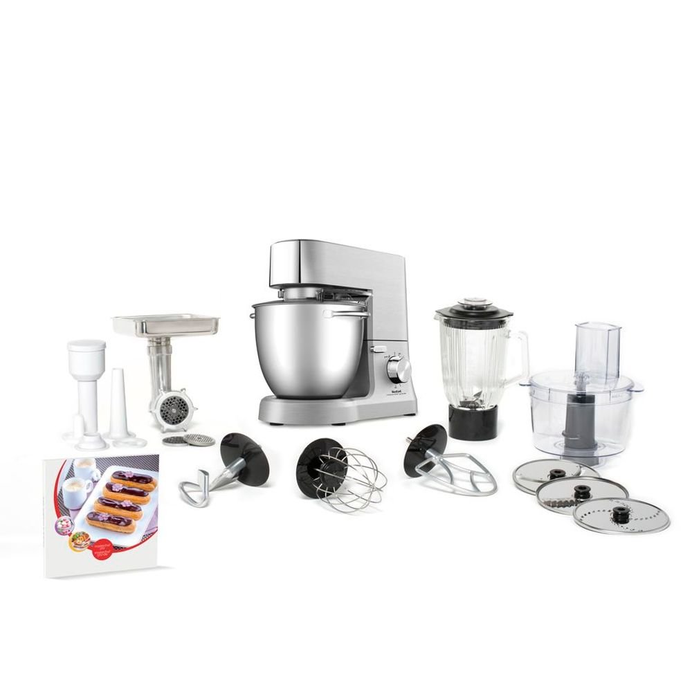 Robot de bucatarie planetar Tefal Masterchef Grande QB813D38, 1500W, Bol 6.7L, Blender, Masina de tocat, Razatoare, Inox