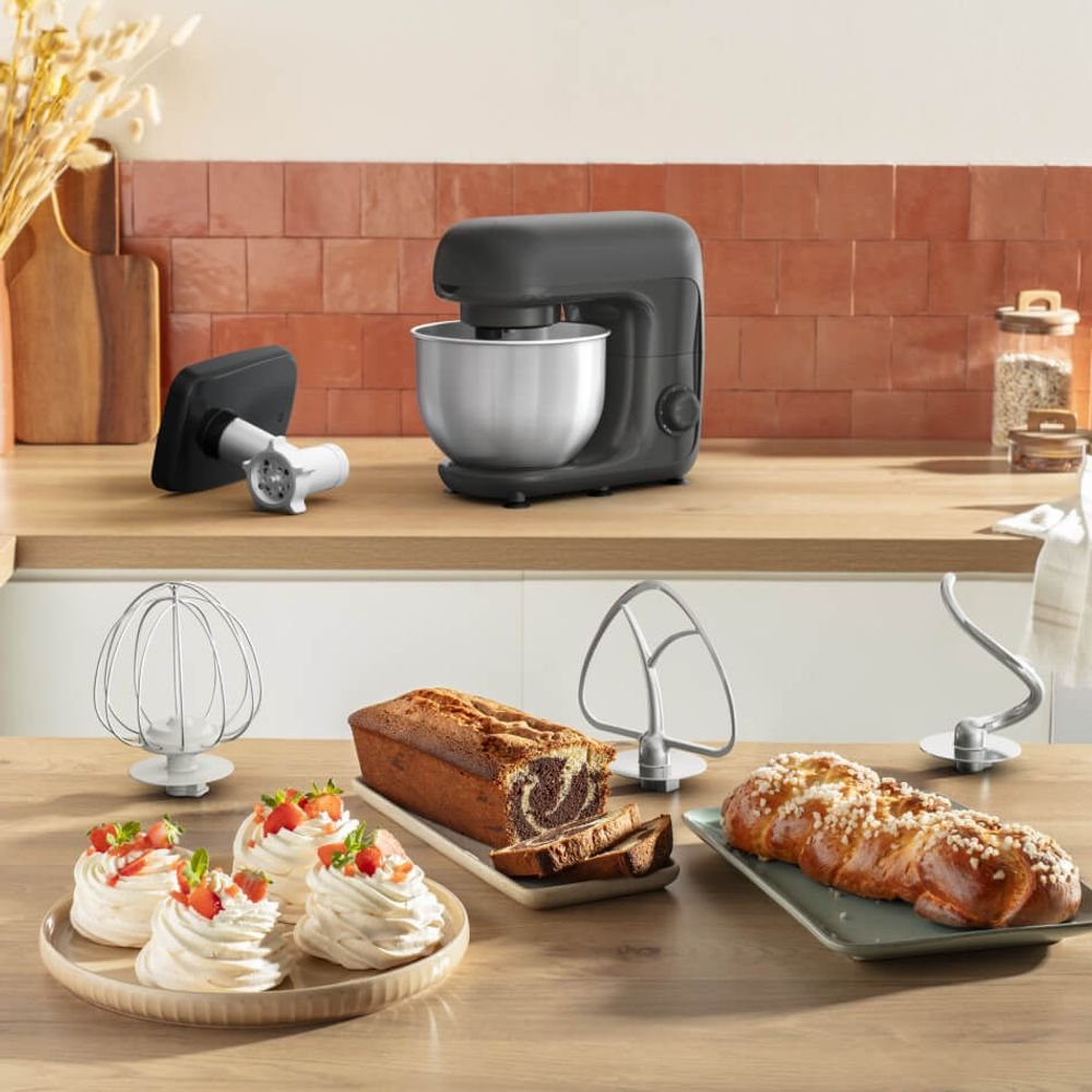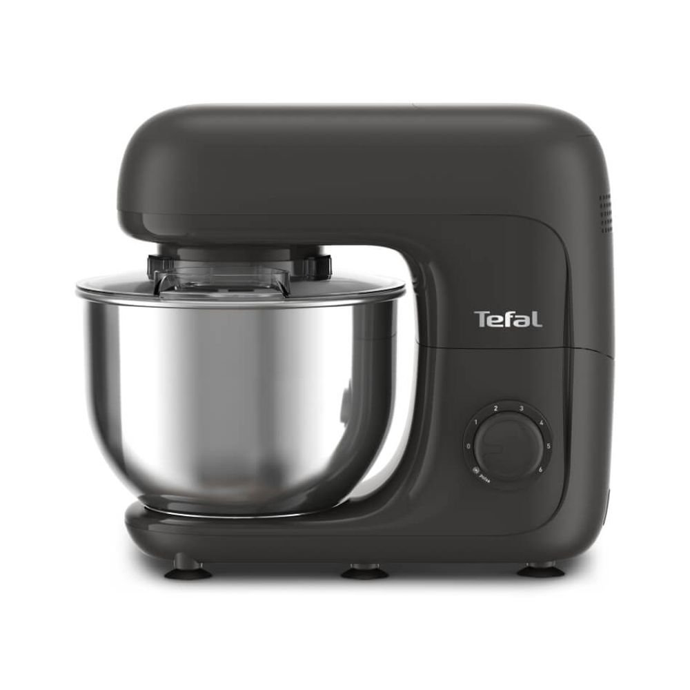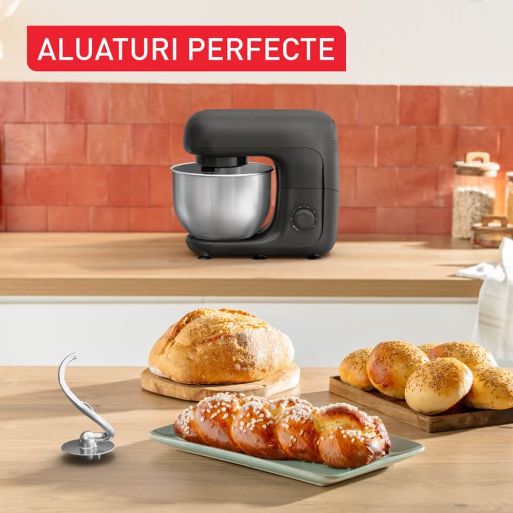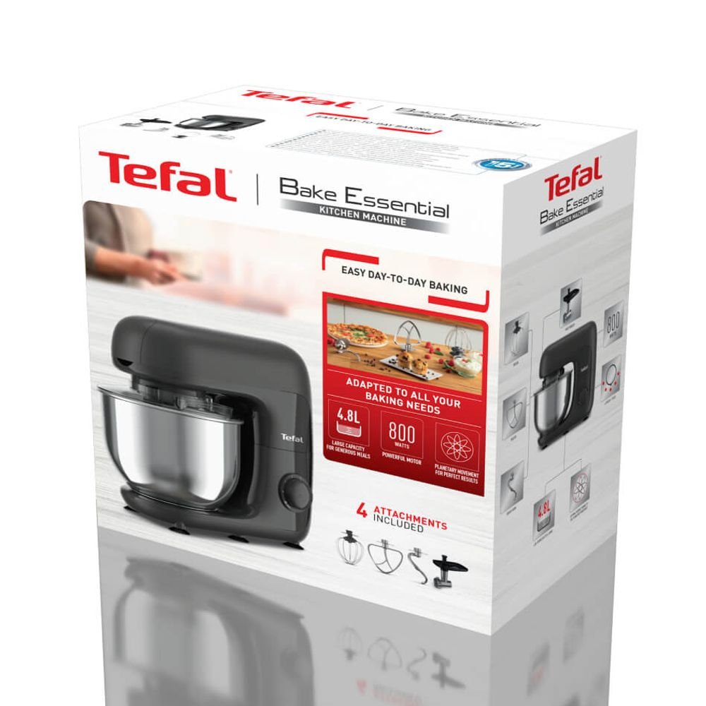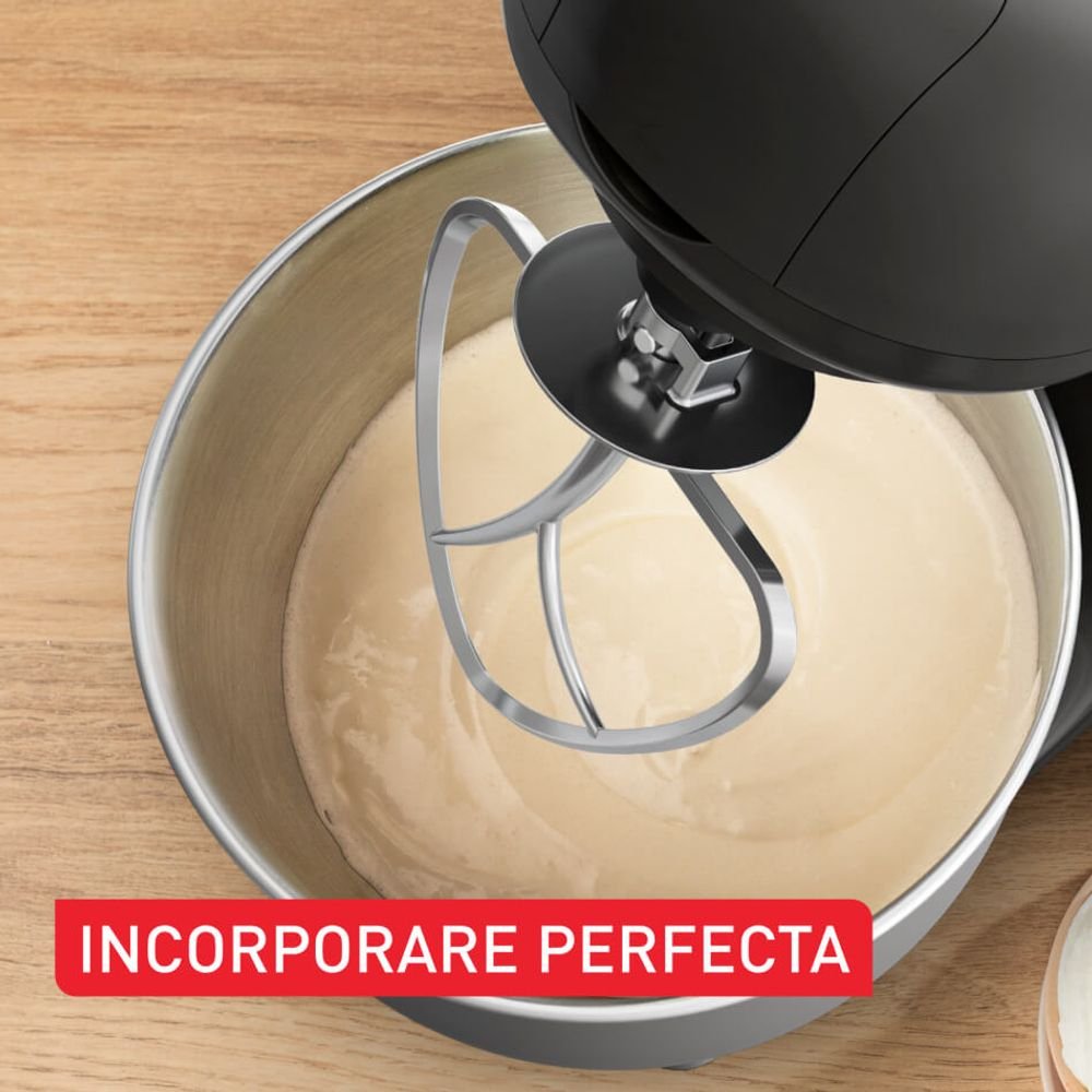 Robot de bucatarie Tefal Bake Essential QB161H38, 800W, Vas inox 4.8L, 6 viteze, Kit patiserie inclus, Negru