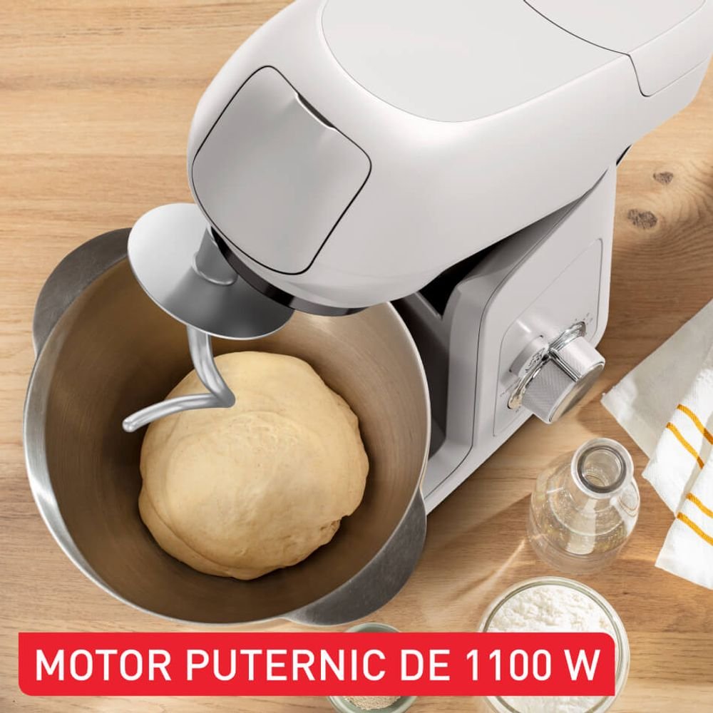 Punctul forte al acestui model este bolul generos de 4.6 litri din otel inoxidabil, care iti permite sa prepari cantitati mari de mancare pentru intreaga familie sau pentru ocazii speciale. Cele 8 trepte de viteza, completate de functia Pulse, ofera un control absolut asupra procesului de amestecare, asigurand o omogenizare perfecta a ingredientelor. Tehnologia patentata a telului garanteaza rezultate aerate si impecabile, chiar si atunci cand lucrezi cu un volum mic de ingrediente.