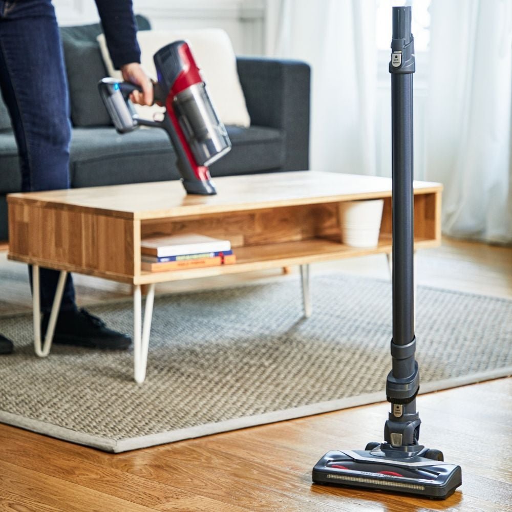 Unul dintre avantajele majore ale acestui model este functia inovatoare Stop & Go. Aceasta permite tubului si capului de aspirare sa ramana in pozitie verticala pe podea atunci cand detasezi unitatea de mana pentru a curata suprafete inalte sau mobilierul, eliminand nevoia de a lasa accesoriile pe jos. Autonomia de pana la 45 de minute, asigurata de bateria detasabila de 18V, iti ofera libertatea de a parcurge intreaga casa intr-o singura sesiune, fara intreruperi pentru reincarcare.