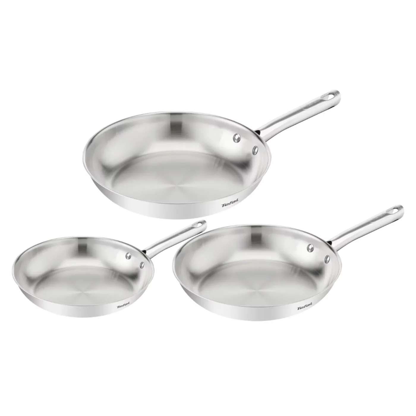 Set 3 Tigai Tefal Duetto On B866S334, 20/24/28 cm, Otel Inoxidabil 18/10, Baza Thermo-Fusion, Inductie, Argintiu