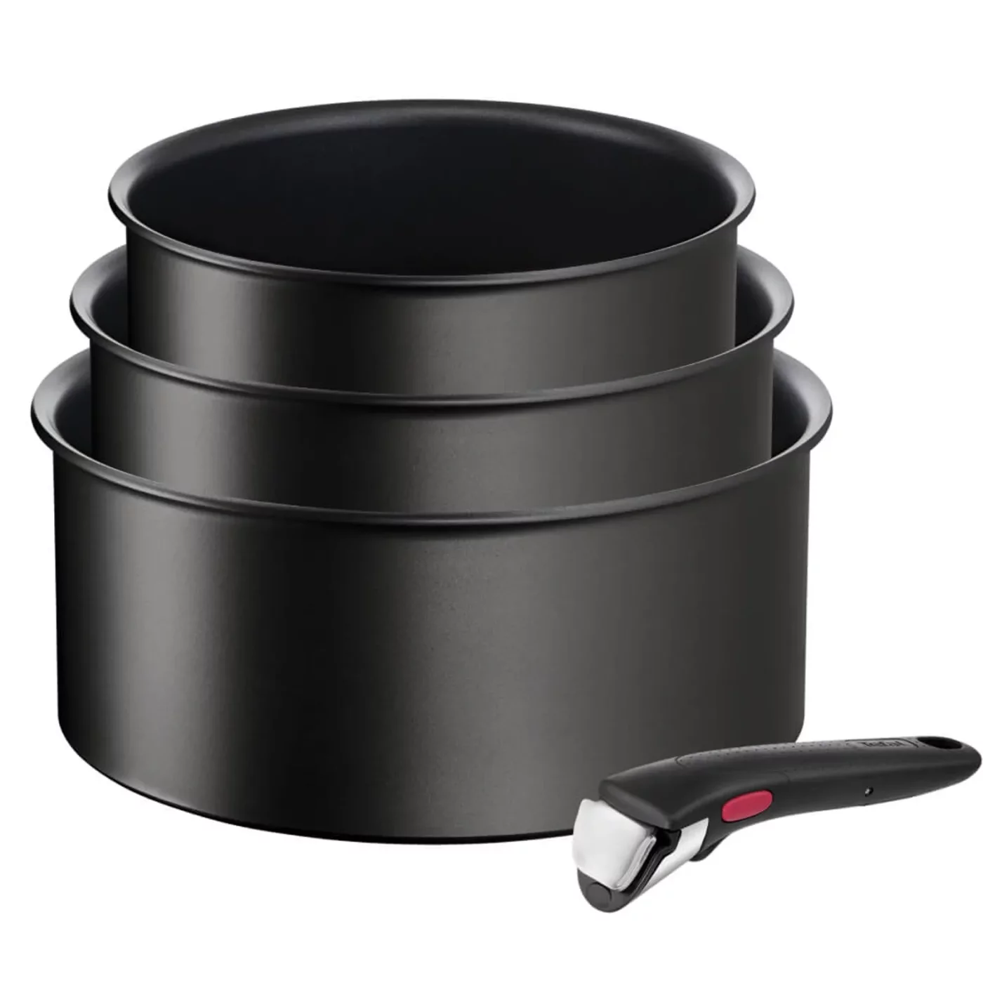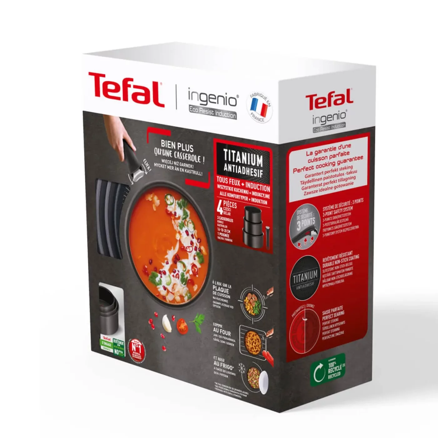 Set 4 piese Tefal Ingenio Eco Resist L3979202, maner detasabil, Thermo-Signal, invelis antiaderent, compatibil cu inductia