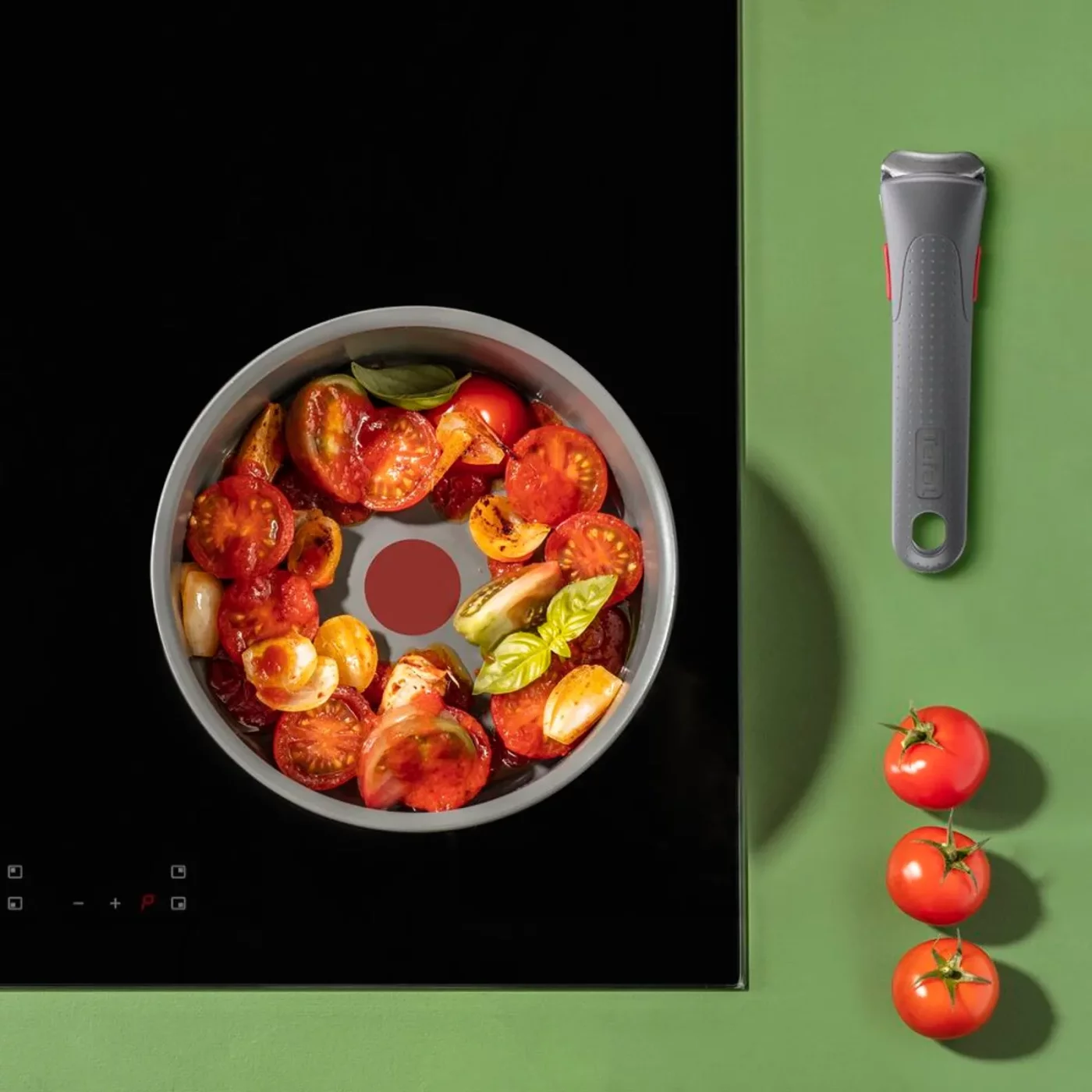 Tehnologia avansata de inductie asigura distributie uniforma a caldurii pentru rezultate rapide si omogene, prevenind deformarea in timp. Setul este compatibil cu toate sursele de caldura, inclusiv inductie, si poate fi utilizat la cuptor datorita manerului detasabil.
