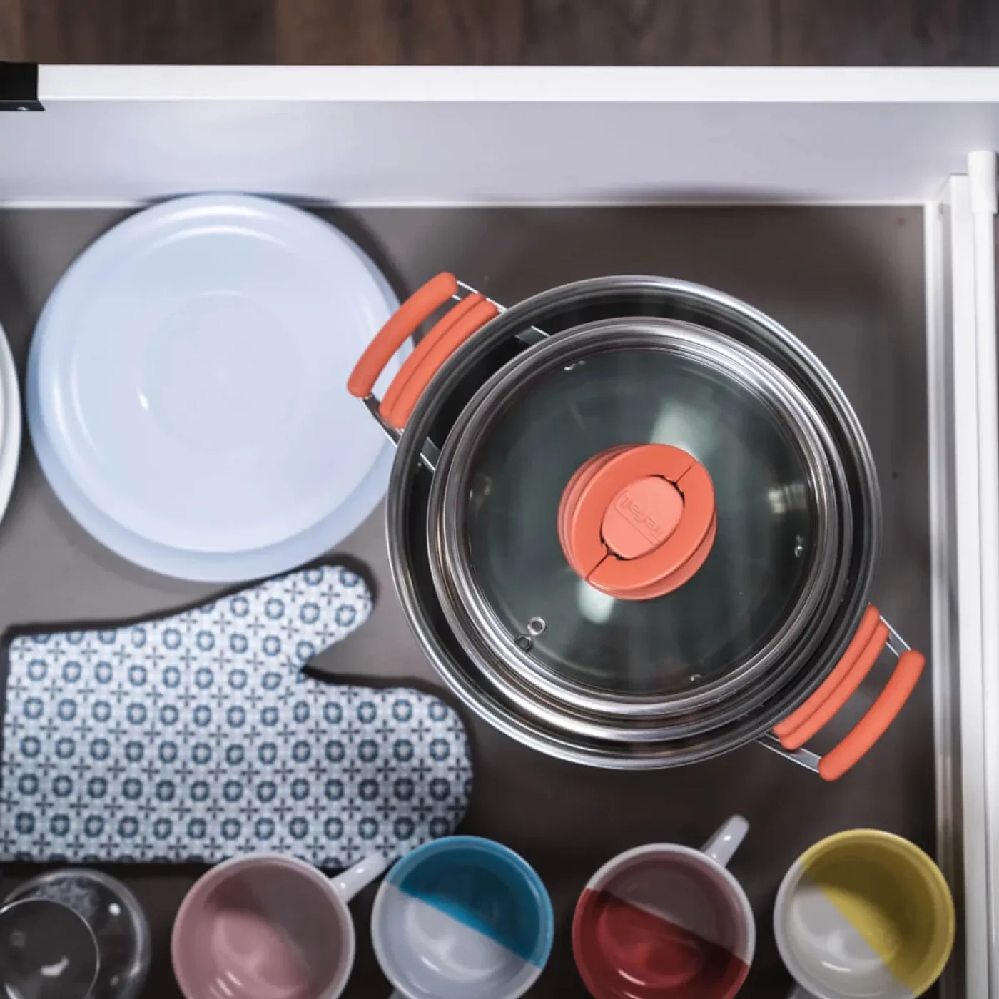 Descopera setul de 6 piese Tefal Opti'Space G720S674. Include cratita de 18 cm, oale de 20 si 24 cm, plus 3 capace din sticla. Confectionat din otel inoxidabil premium, cu design compact pentru economisirea spatiului, gradatii interioare si compatibilitate cu inductia si cuptorul (pana la 210°C). Gateste inteligent si organizeaza-ti bucataria eficient!
