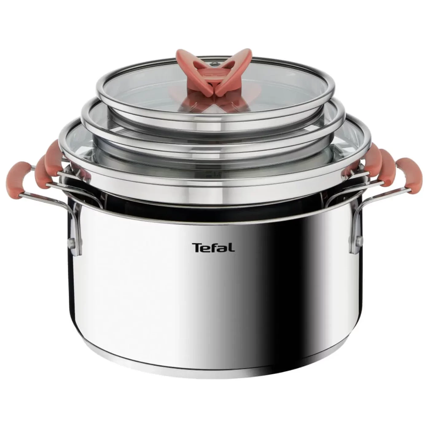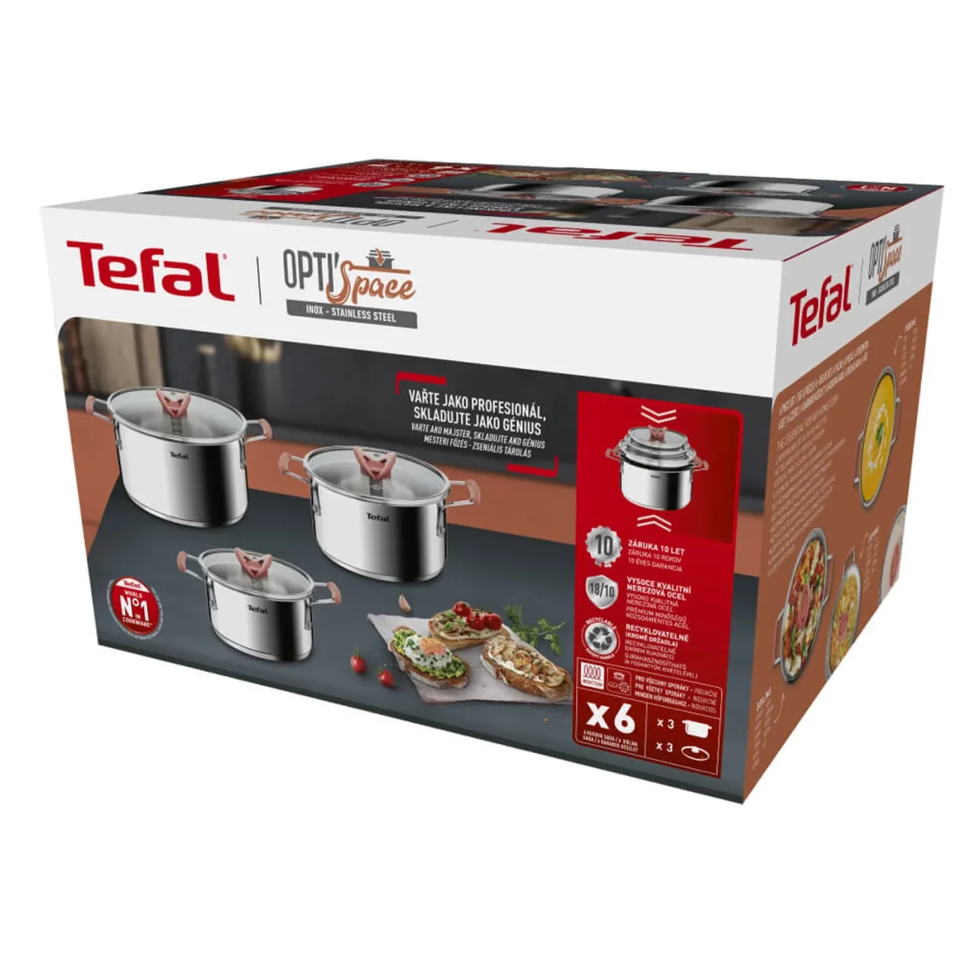 Set 6 piese Tefal Opti'Space G720S674, Cratita 18cm, Oale 20/24cm, Inox, Inductie