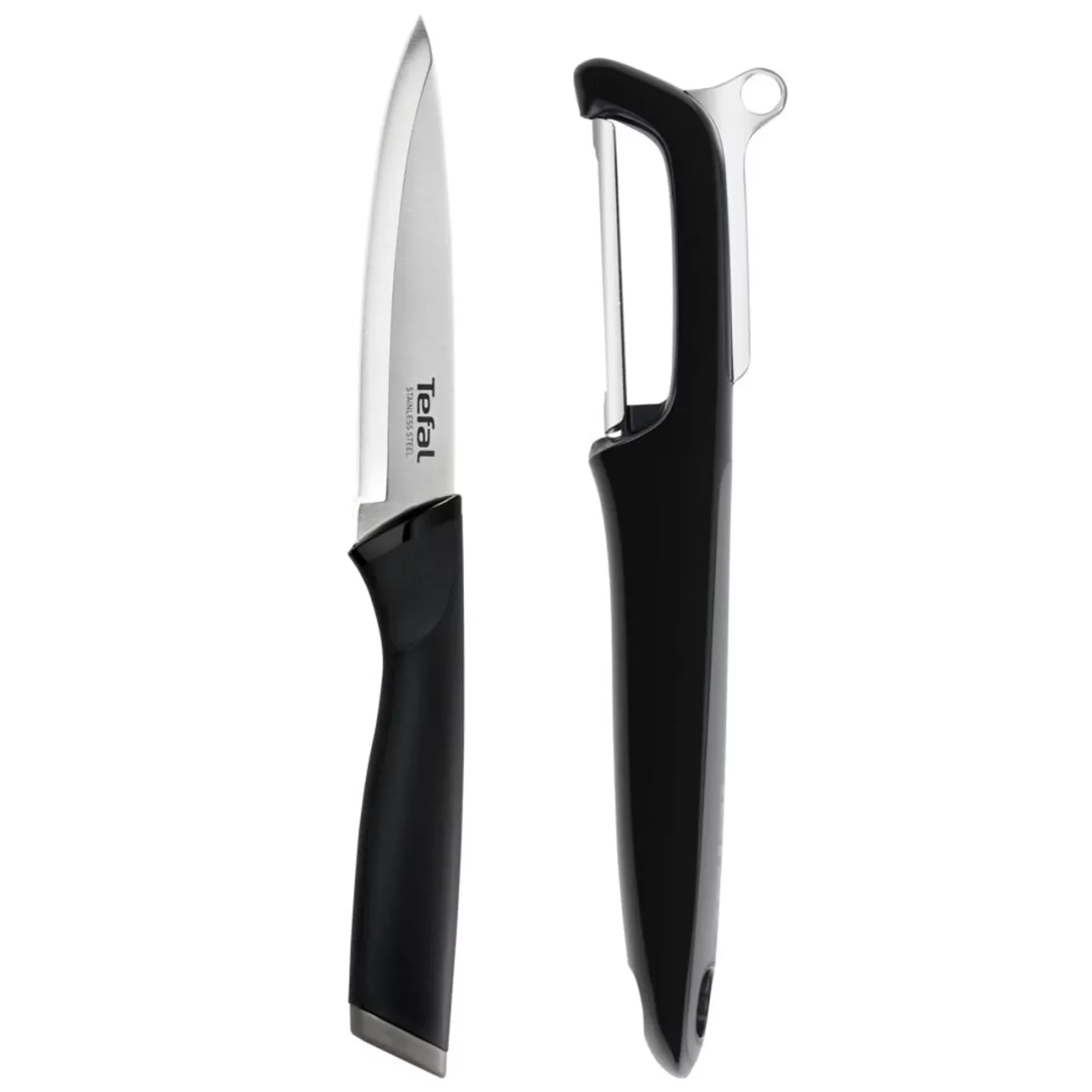Set pentru curatarea legumelor Tefal Essential K2219255, Cutit utilitar 12 cm, Dispozitiv decojire, Maner Soft Touch, Inox