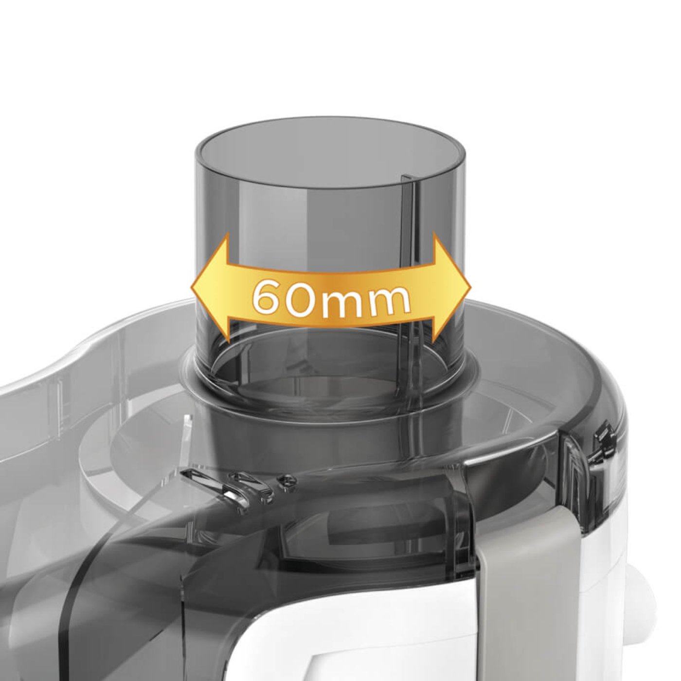 Orificiul de alimentare de mari dimensiuni permite introducerea bucatilor mari de fructe si legume, economisind timp si oferind sucuri pline de savoare intr-o clipa. Recipientul pentru pulpa de 950 ml asigura colectarea eficienta a resturilor si este ideal pentru portii mari sau mai multe bauturi consecutiv.