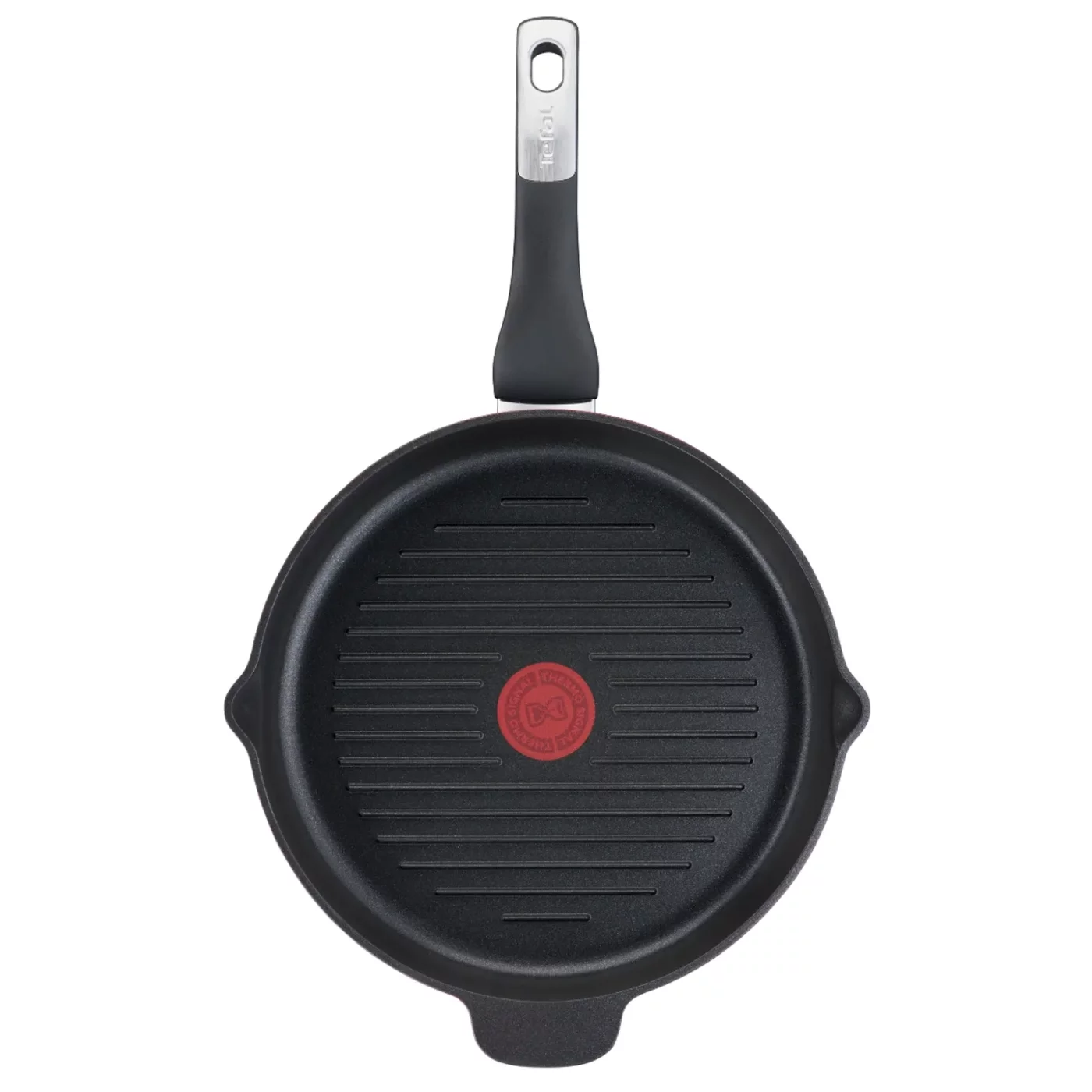 Obtine rezultate perfecte de gratar cu tigaia grill Tefal Unlimited de 26 cm. Dotata cu invelisul Titanium Anti-Scratch ultra-rezistent si indicatorul Thermo-Signal™, asigura gatire uniforma pe orice plita, inclusiv inductie. Design robust din aluminiu, fabricat in Franta pentru durabilitate maxima.