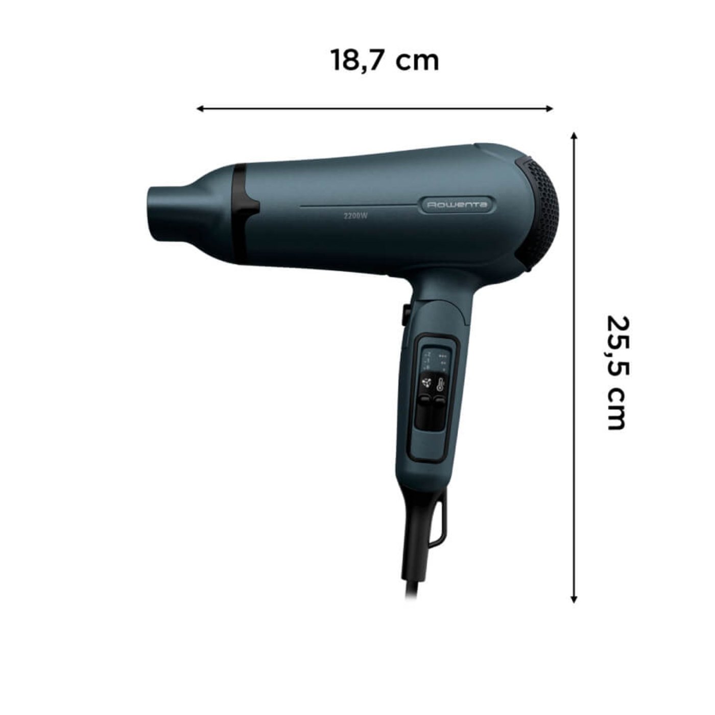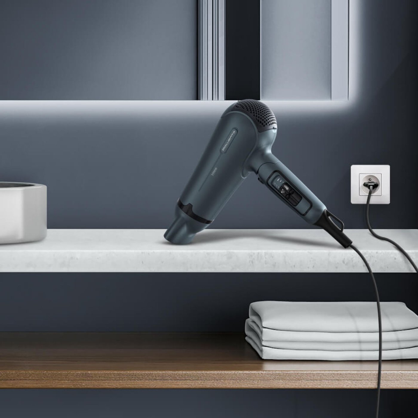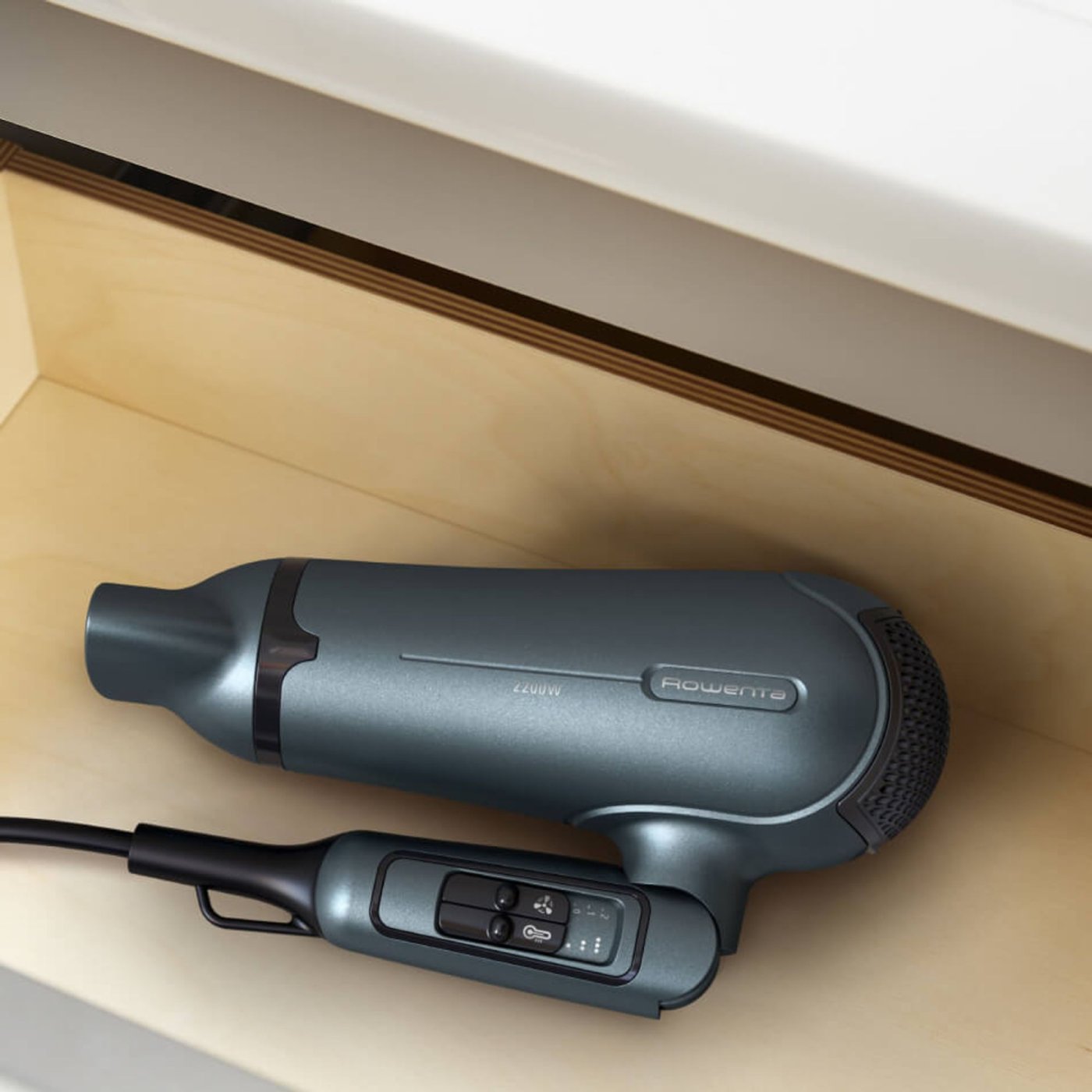 Designul compact si cablul de alimentare lung asigura confort in utilizare si libertate de miscare, pastrand in acelasi timp uscatorul mereu la indemana.
