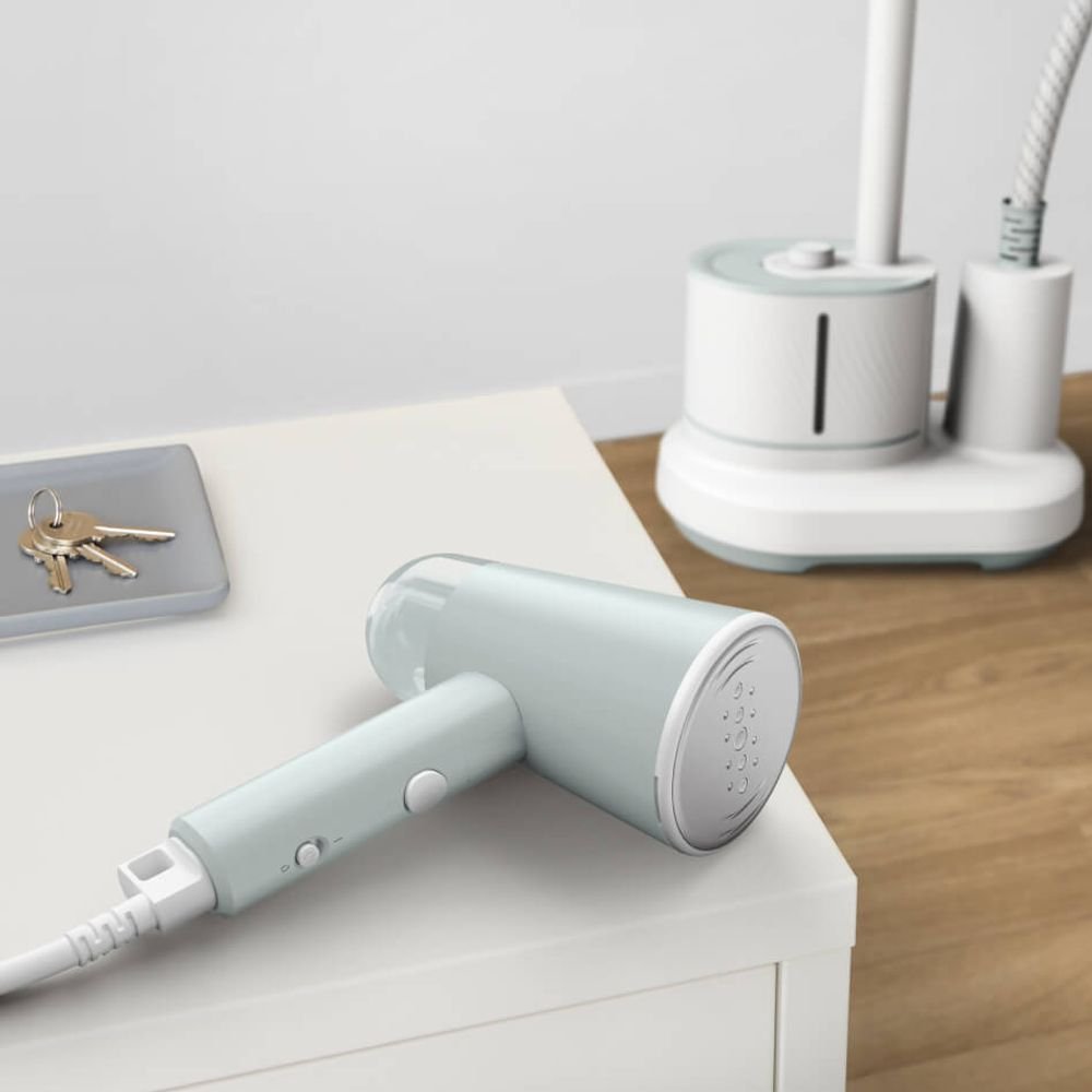 Designul sau inteligent si ergonomic include un rezervor de apa de 70 ml, usor de umplut, si un cablu de alimentare generos de 2 metri, oferindu-ti libertate totala de miscare. Pe langa netezirea hainelor, aburul puternic ajuta la igienizarea si improspatarea tesaturilor, eliminand mirosurile neplacute si bacteriile.