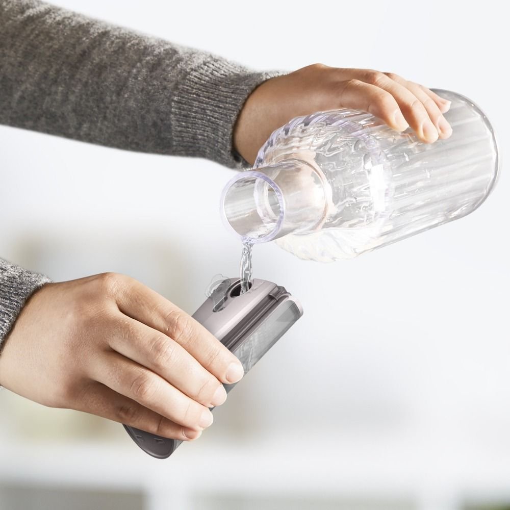 Designul sau ergonomic si echilibrat permite o manevrare usoara, iar cablul generos de 2.6 metri ofera libertate totala de miscare. Rezervorul de apa de 180 ml este detasabil pentru o umplere facila, oferind o autonomie de pana la 12 minute. Siguranta este prioritara, aparatul dispunand de functie de oprire automata.
