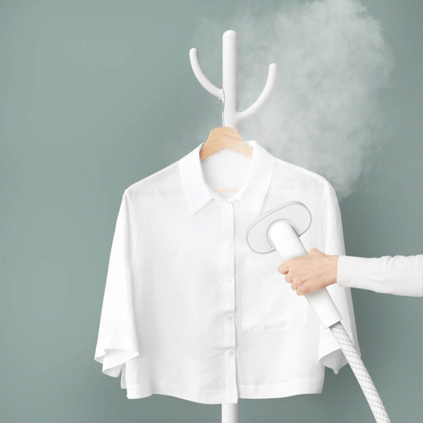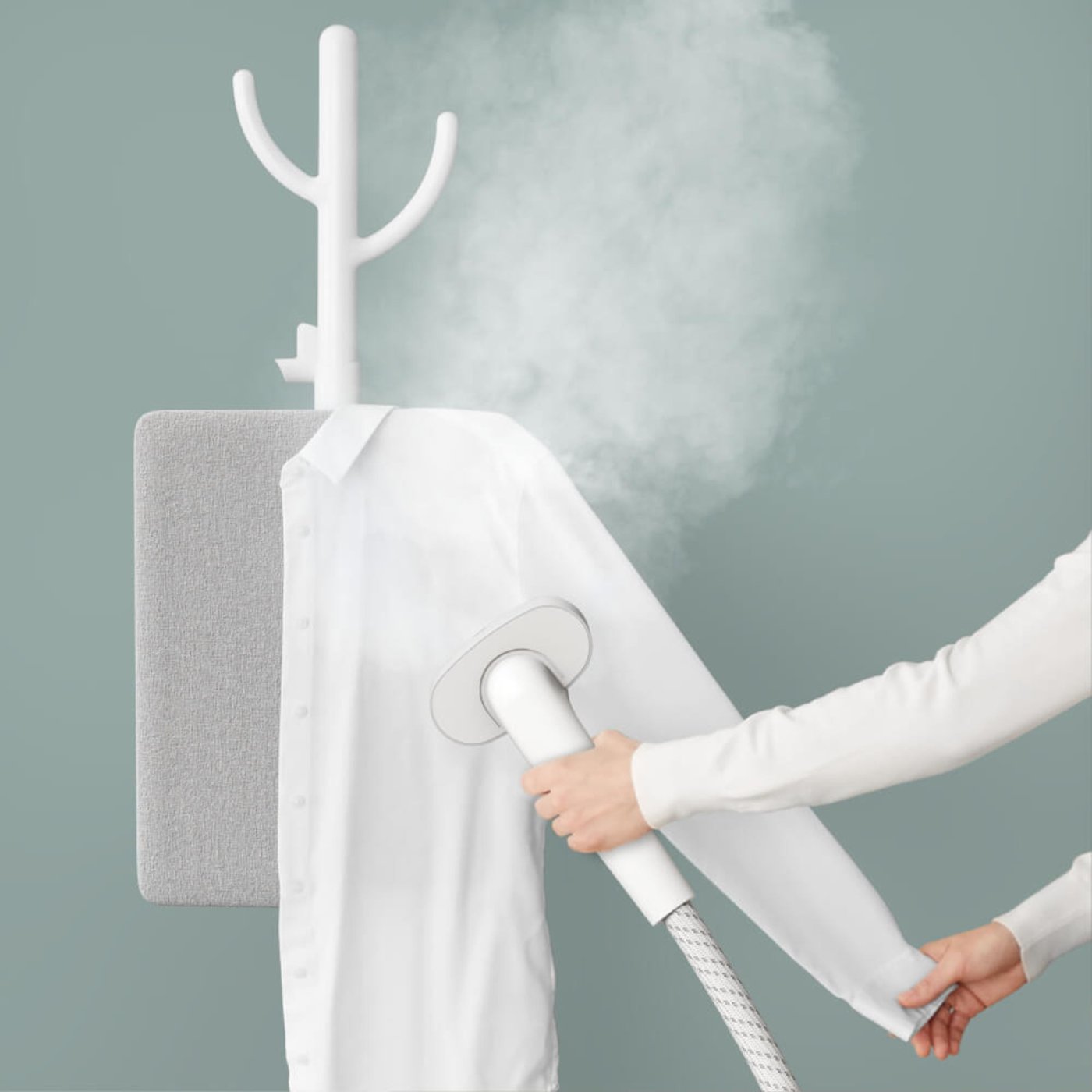 Gratie puterii naturale a aburului, fierul de calcat vertical elimina pana la 99% din bacterii, virusuri si germeni*, fara a fi nevoie de substante chimice. Suportul integrat permite calcarea usoara cu o singura mana, oferind confort si stabilitate in utilizare.
