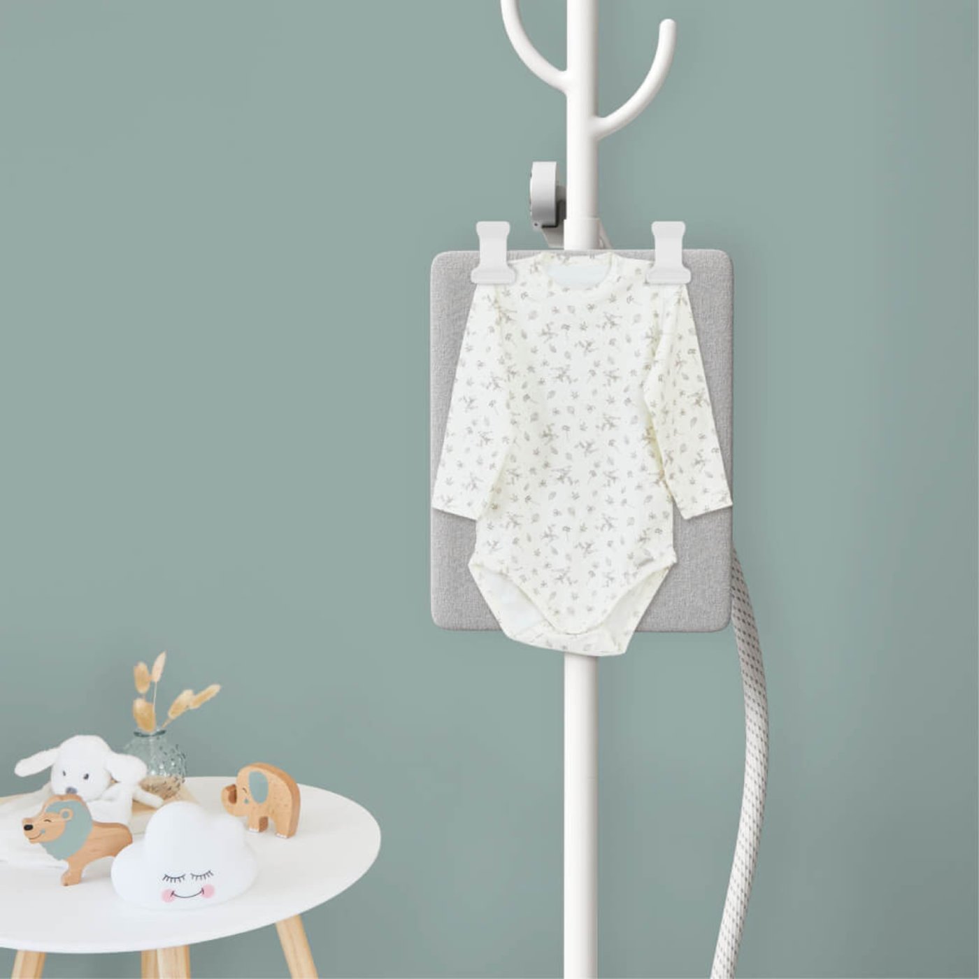 Pentru un plus de versatilitate, aparatul vine insotit de accesorii dedicate: cleme pentru pantaloni sau haine de copii, perie pentru tesaturi groase si o manusa de protectie, menite sa iti usureze experienta de calcare.