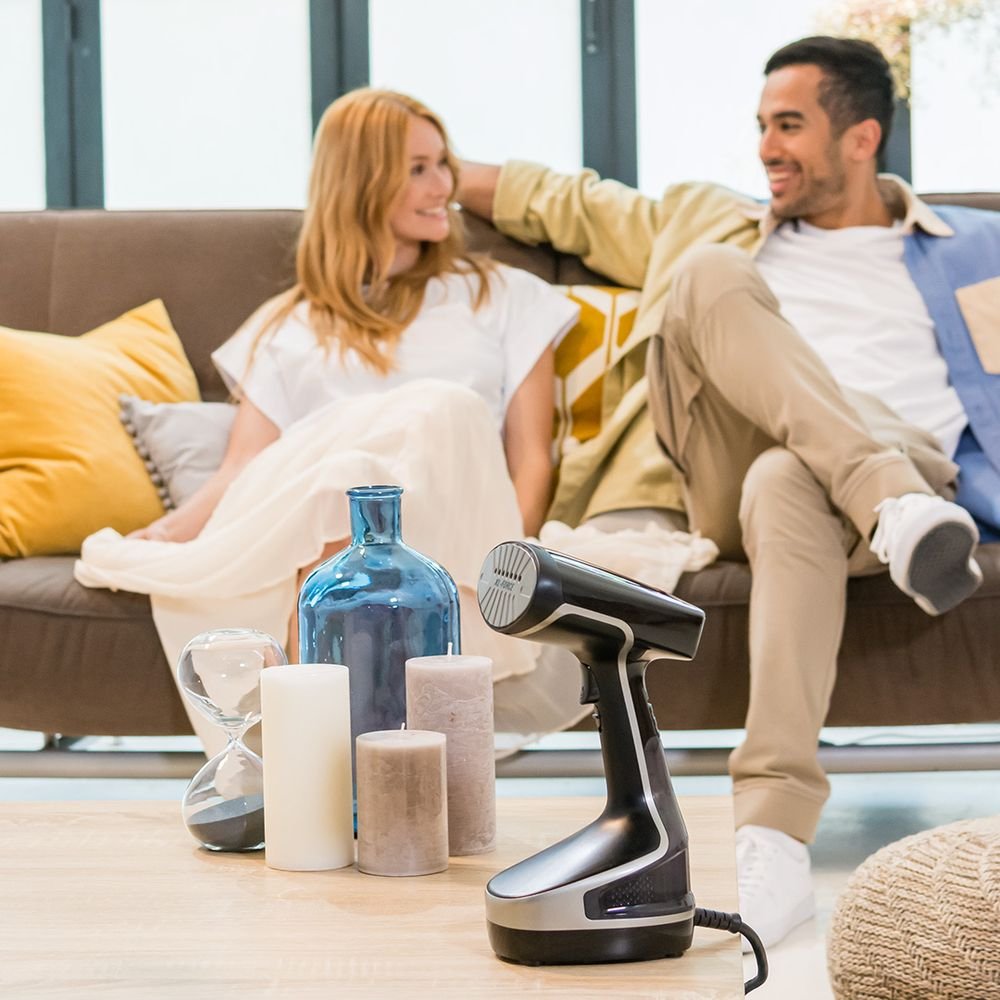 Datorita tehnologiei avansate a talpii incalzite, acest aparat asigura o calcare perfecta fara a lasa hainele umede, permitandu-ti sa le porti imediat dupa utilizare. Tehnologia Smart Temp garanteaza siguranta totala pe orice tip de material, eliminand riscul de ardere chiar si pe tesaturile delicate. Aparatul se incalzeste in doar 25 de secunde si vine echipat cu o perie inovatoare din microfibra, care indeparteaza praful si scamele in timp ce igienizeaza profund. Aburul natural omoara pana la 99.99% din germeni, virusuri si bacterii, oferind o solutie completa pentru o garderoba proaspata si o locuinta curata.